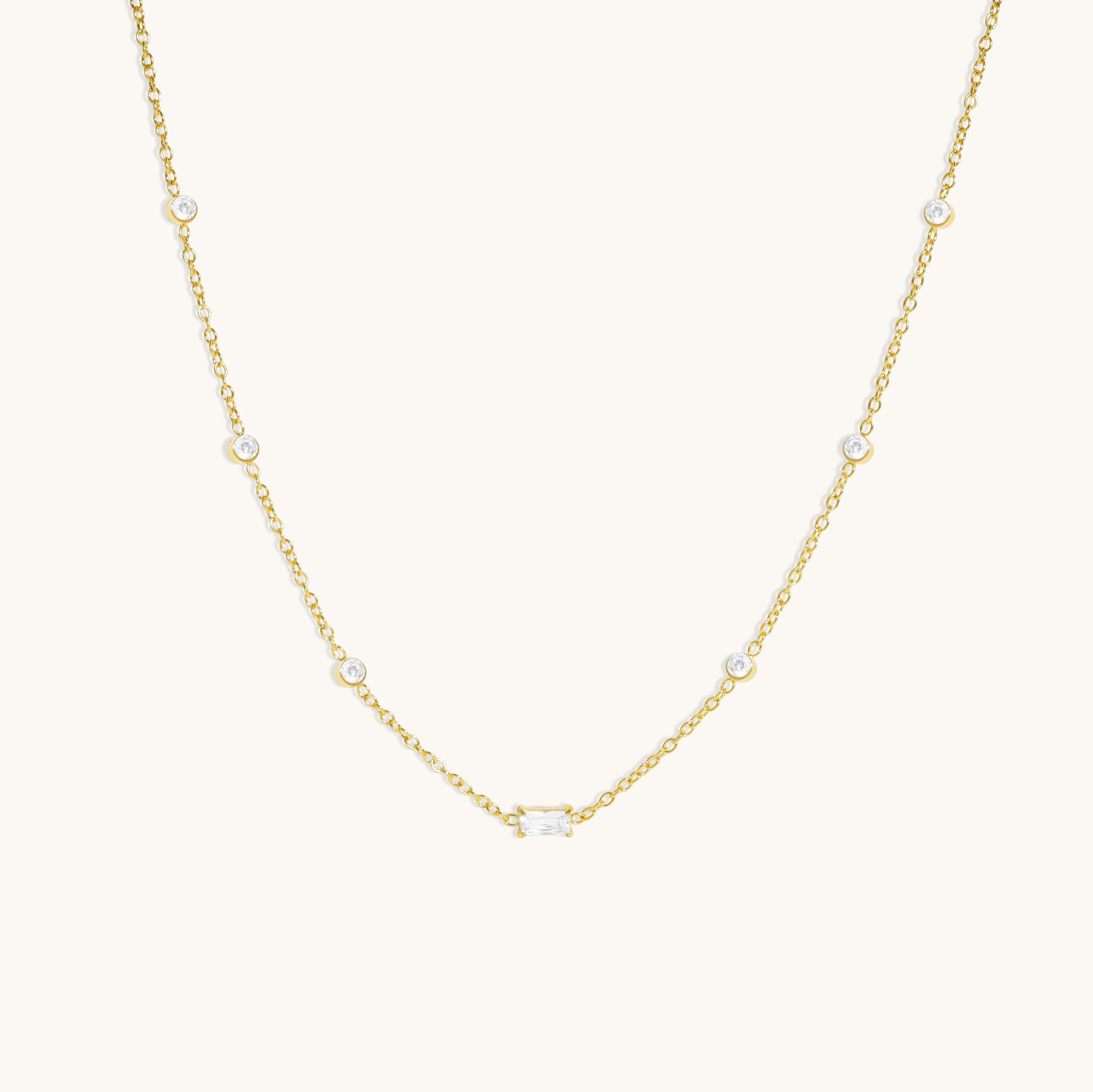 Reach for the stars with the Celestial Necklace.: Inspired by the night sky, the Celestial Necklace features delicate gold discs and shimmering gemstones along a fine chain. This radiant design adds a touch of celestial charm to any outfit, making it perfect for both special occasions and everyday elegance. Reach for the stars with this luminous piece!