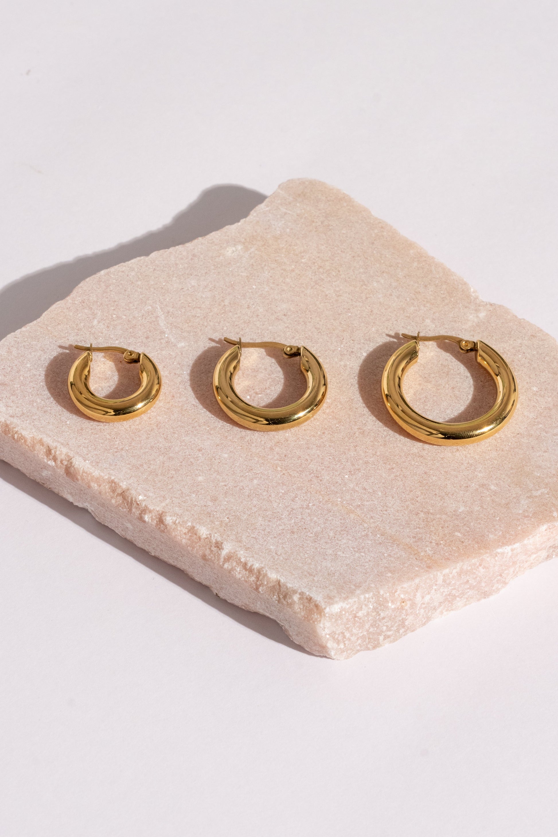 Bold and stylish circle thick hoops that elevate your look. Embrace effortless elegance with Celine hoops, your new to go hoops for every ensemble.