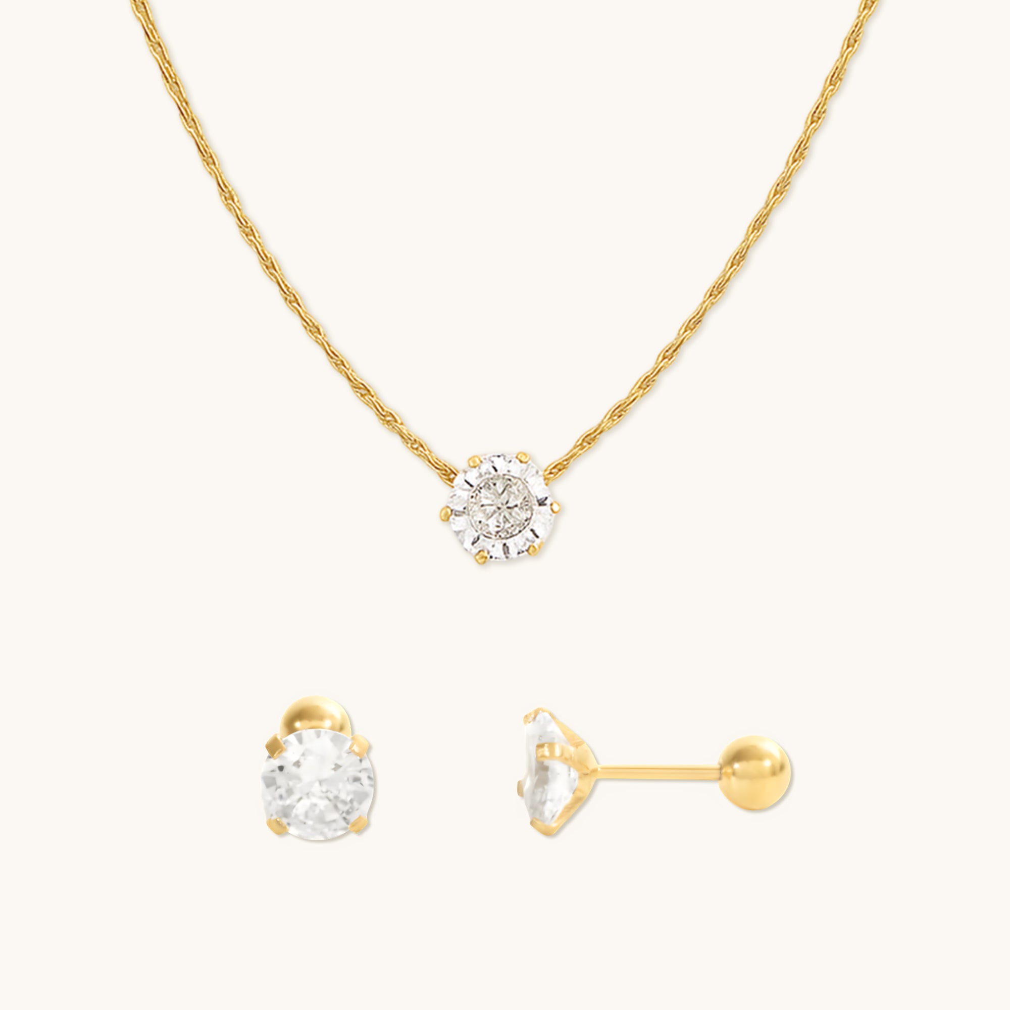 Dainty Diamond Necklace and 4MM Studs Combo