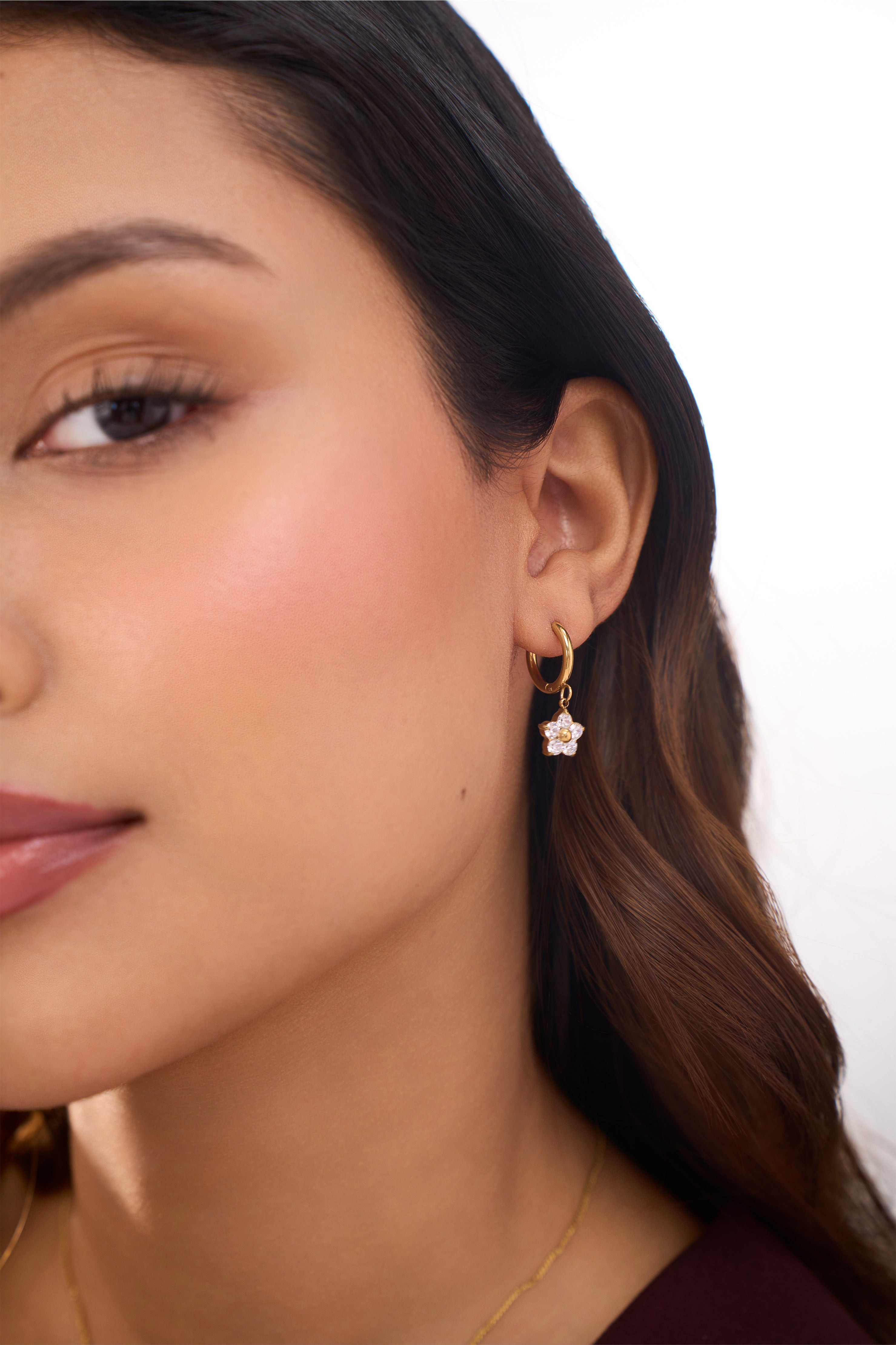 Gracefully adorned with a delicate flower drop, The Delphine earrings are epitomize elegance and sophistication, offering a subtle yet enchanting touch to any attire.