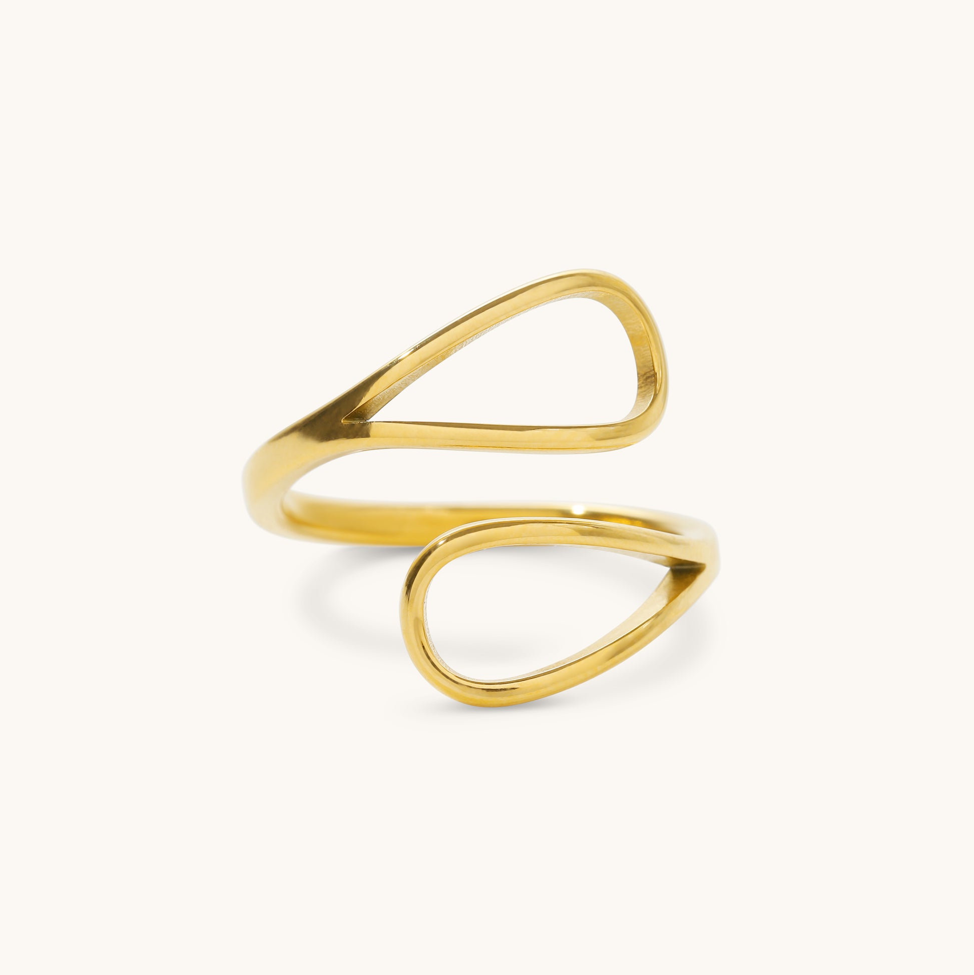 Duet elegant ring features a contemporary design with overlapping bands, creating a unique and stylish look. Perfect for adding a touch of sophistication to any outfit.