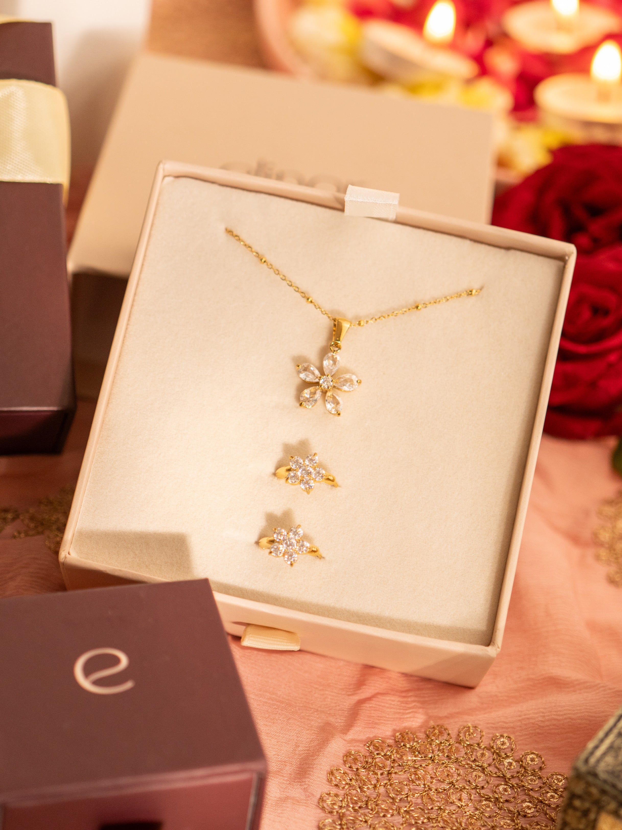 This combo also makes for a nice gift. It comes packed well. No need to add anything extra. Whether it’s a birthday, a thank-you, or just a small gesture, this floral jewellery set feels thoughtful.