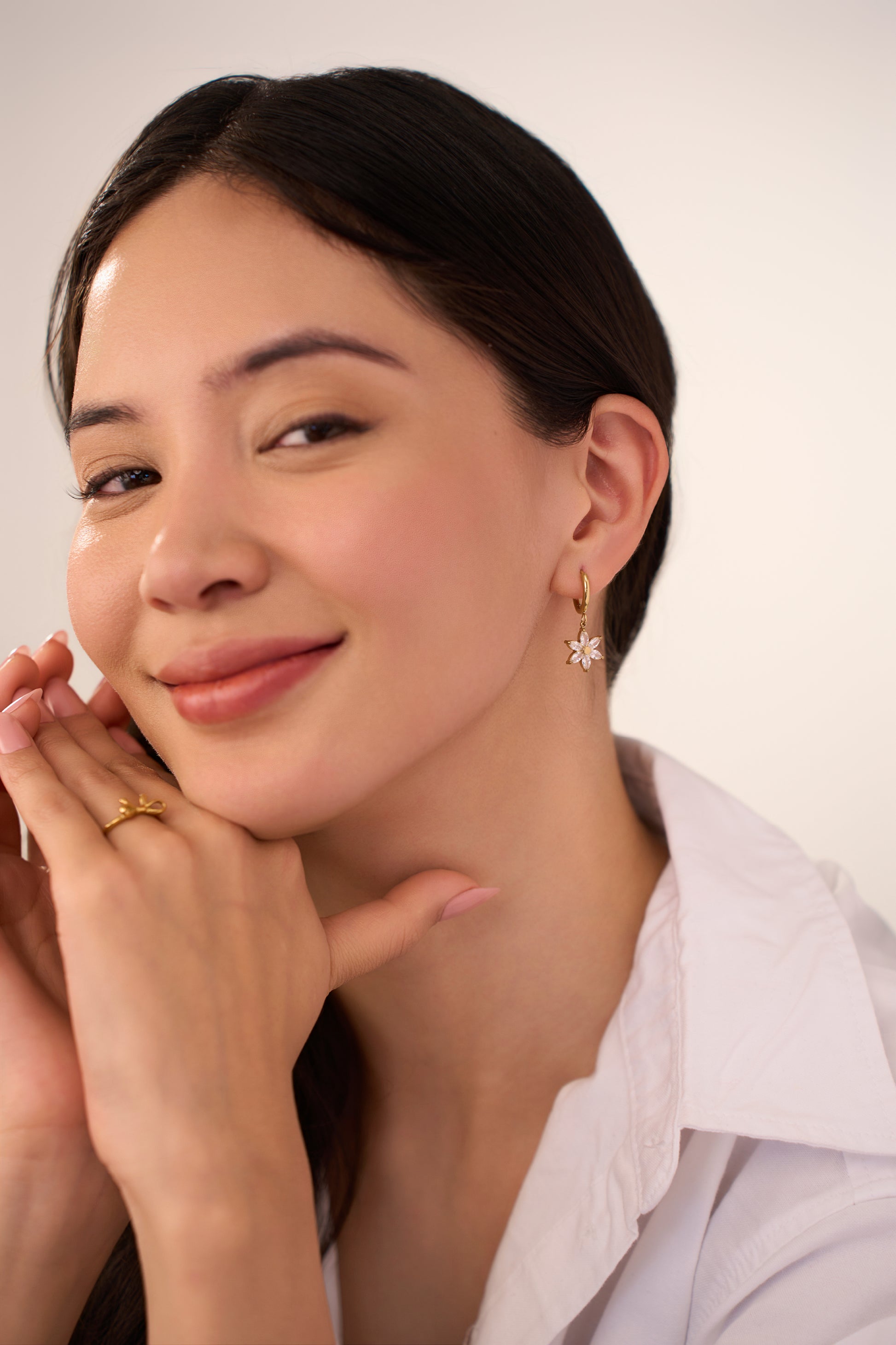 The Judith Huggies features shimmering diamonds set in a timeless design, adorned with delicate floral accents for a touch of feminine charm.