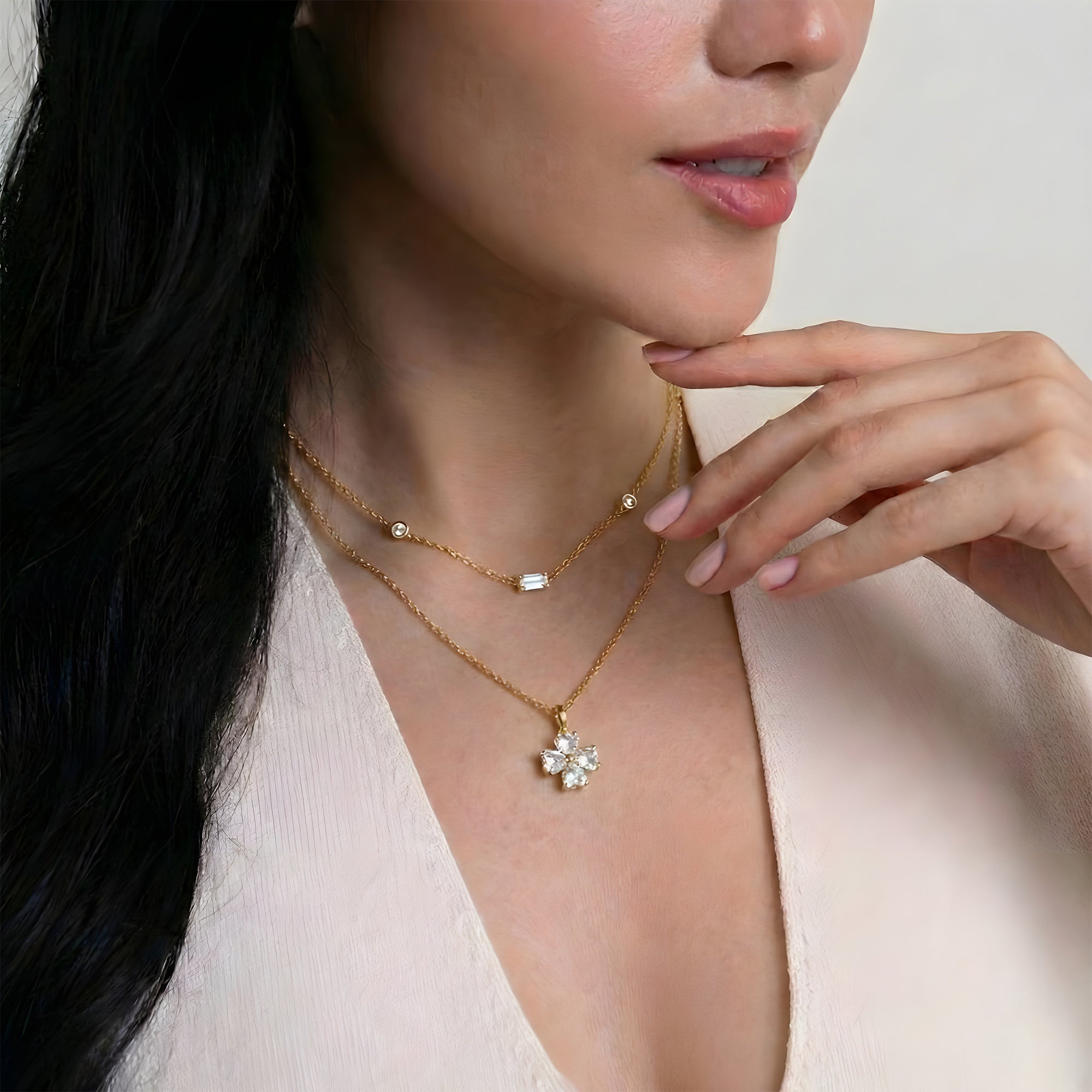 A dreamy necklace duo designed for modern elegance. The Phoebe Necklace adds floral-inspired sparkle, while the Celestial Necklace brings a subtle cosmic charm. Together, they create a beautifully layered look.
