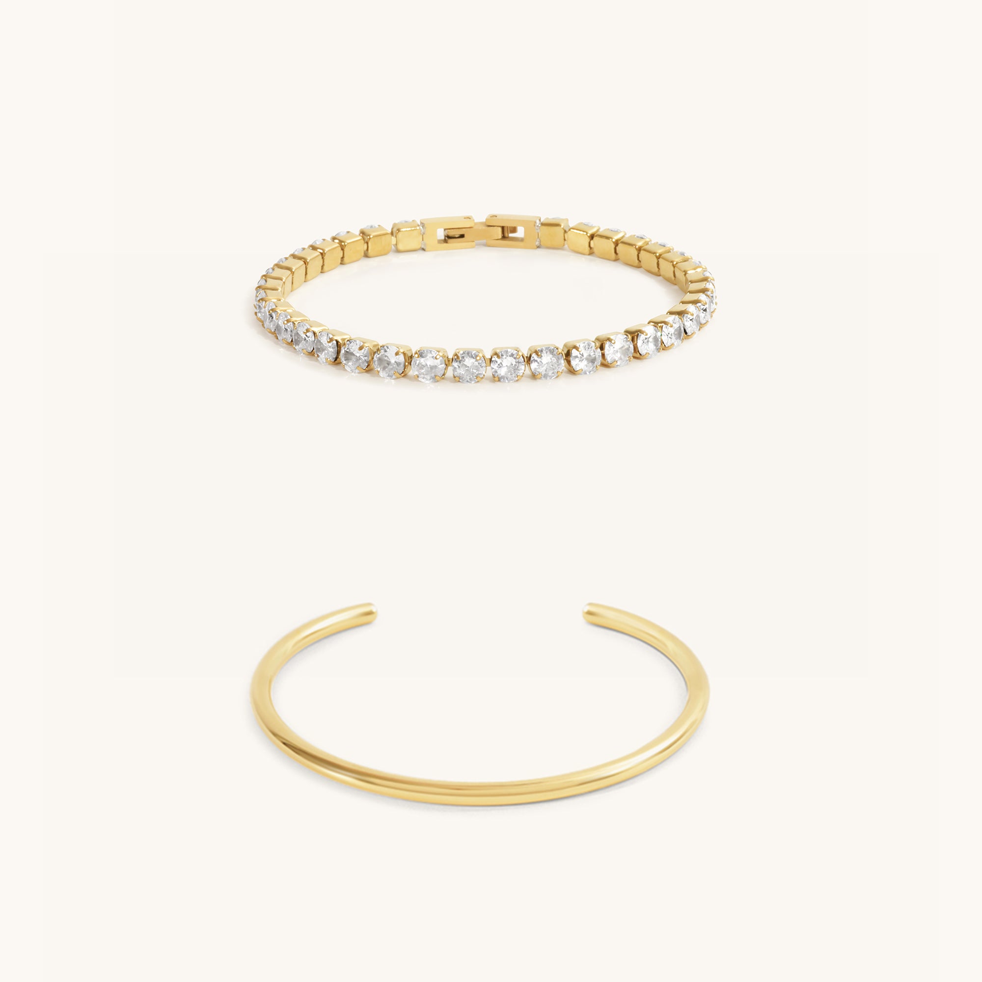 The 18K gold-plated Quinn Bracelet radiates understated elegance while complemented by Hailey Cuff bold and refined appeal. This special-value combo is perfect for elevating everyday style or adding a touch of luxury to special occasions.