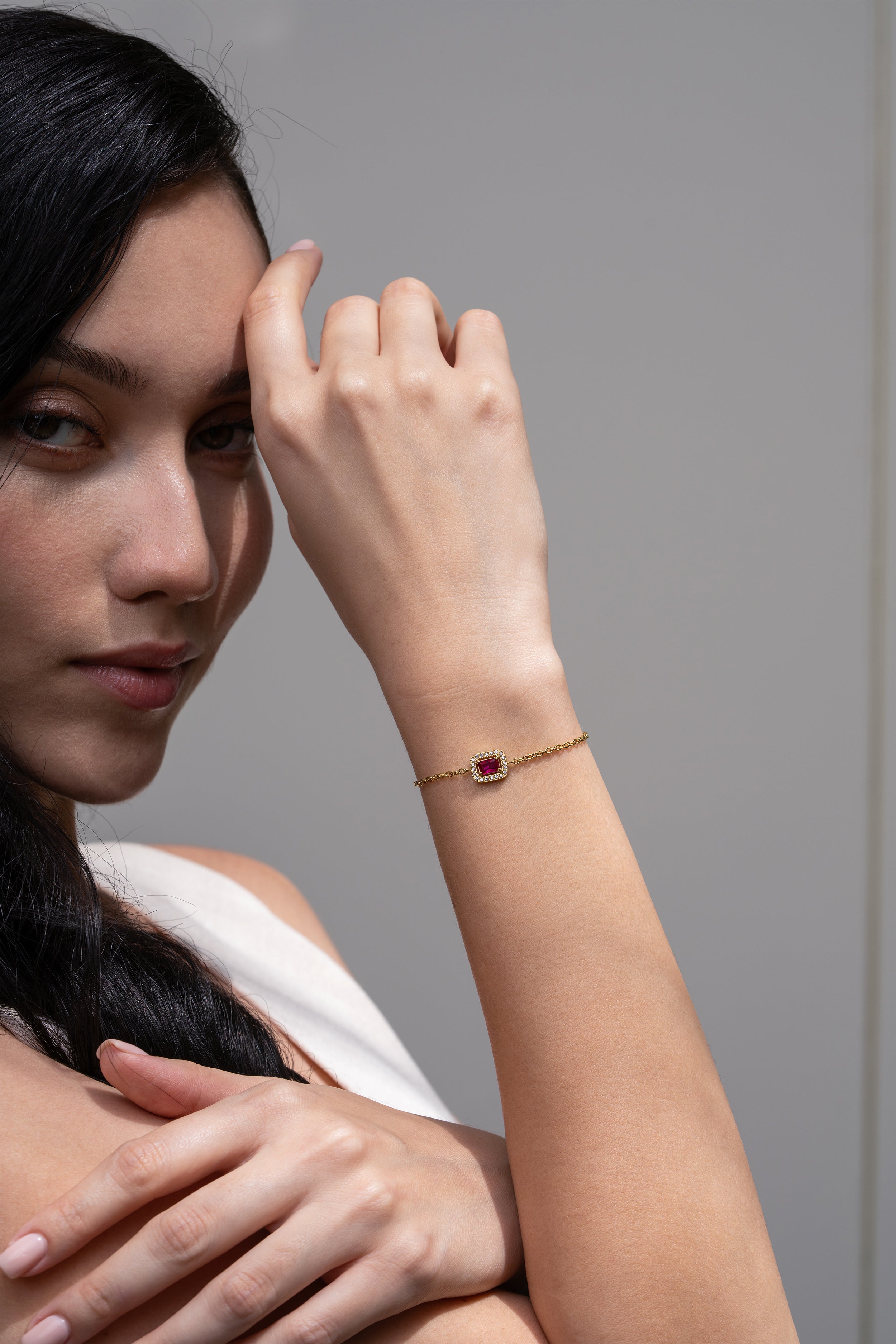 Ruby Rectangle Bracelet - 18K Gold Plated