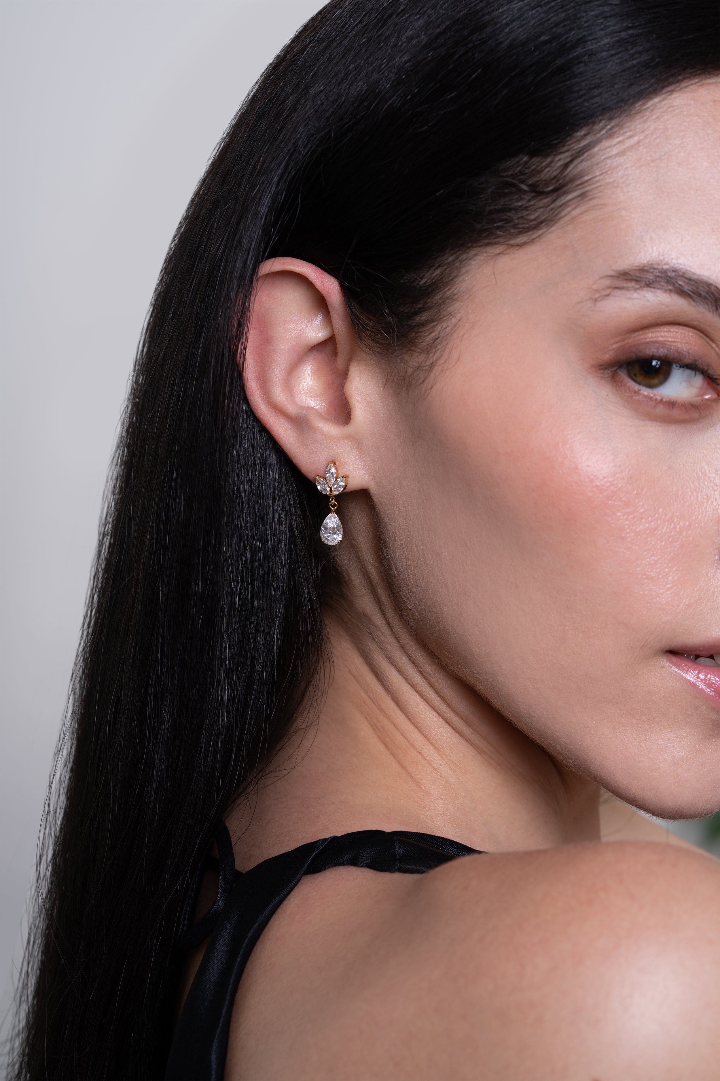 The Whitney Earrings are elegant dangling pieces that move beautifully with every turn, adding effortless glamour to any look.