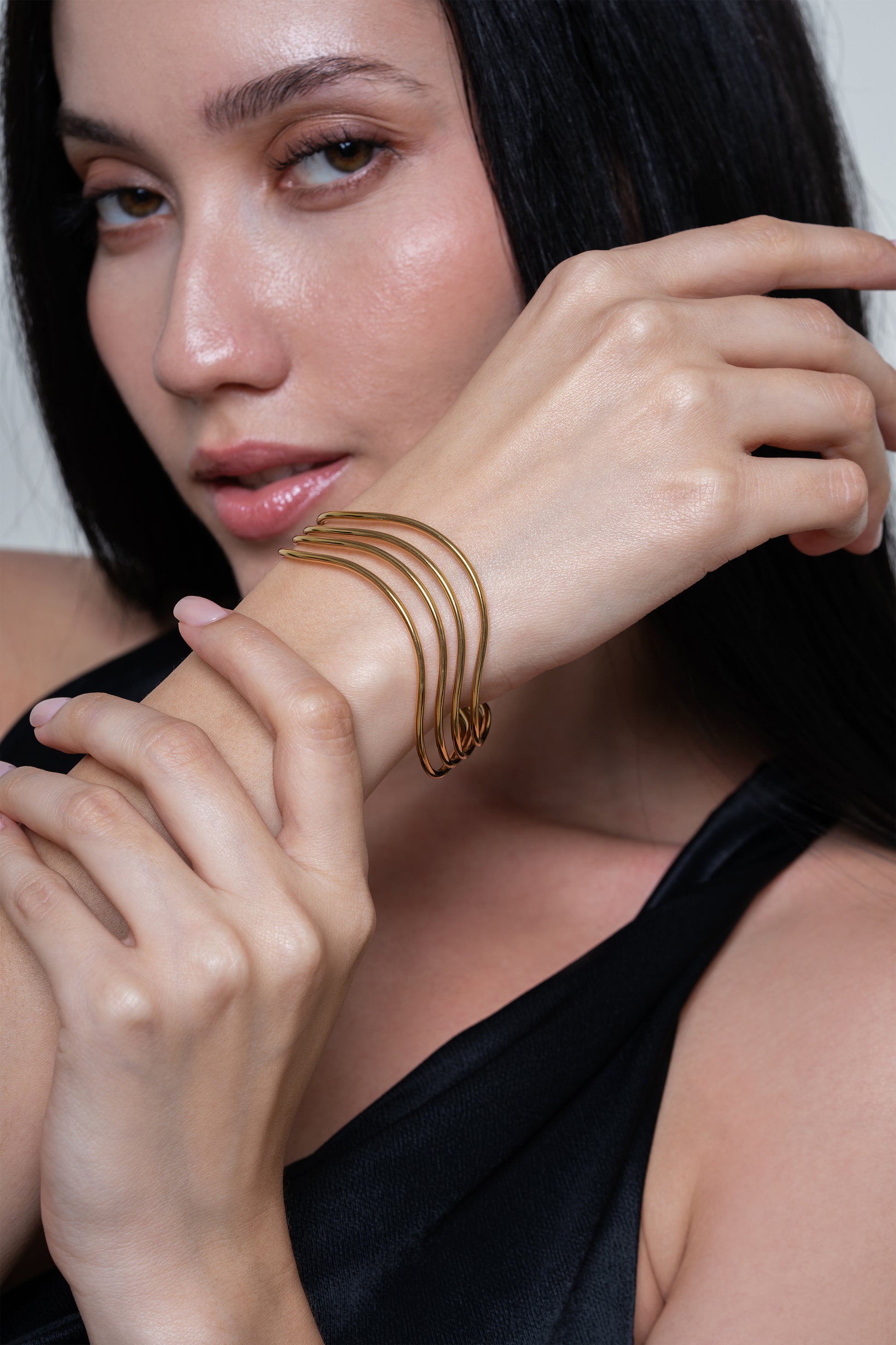 The Ariana Bangle features a distinctive four-wave design that adds a touch of modern elegance to your everyday style. Perfect for stacking or wearing solo.