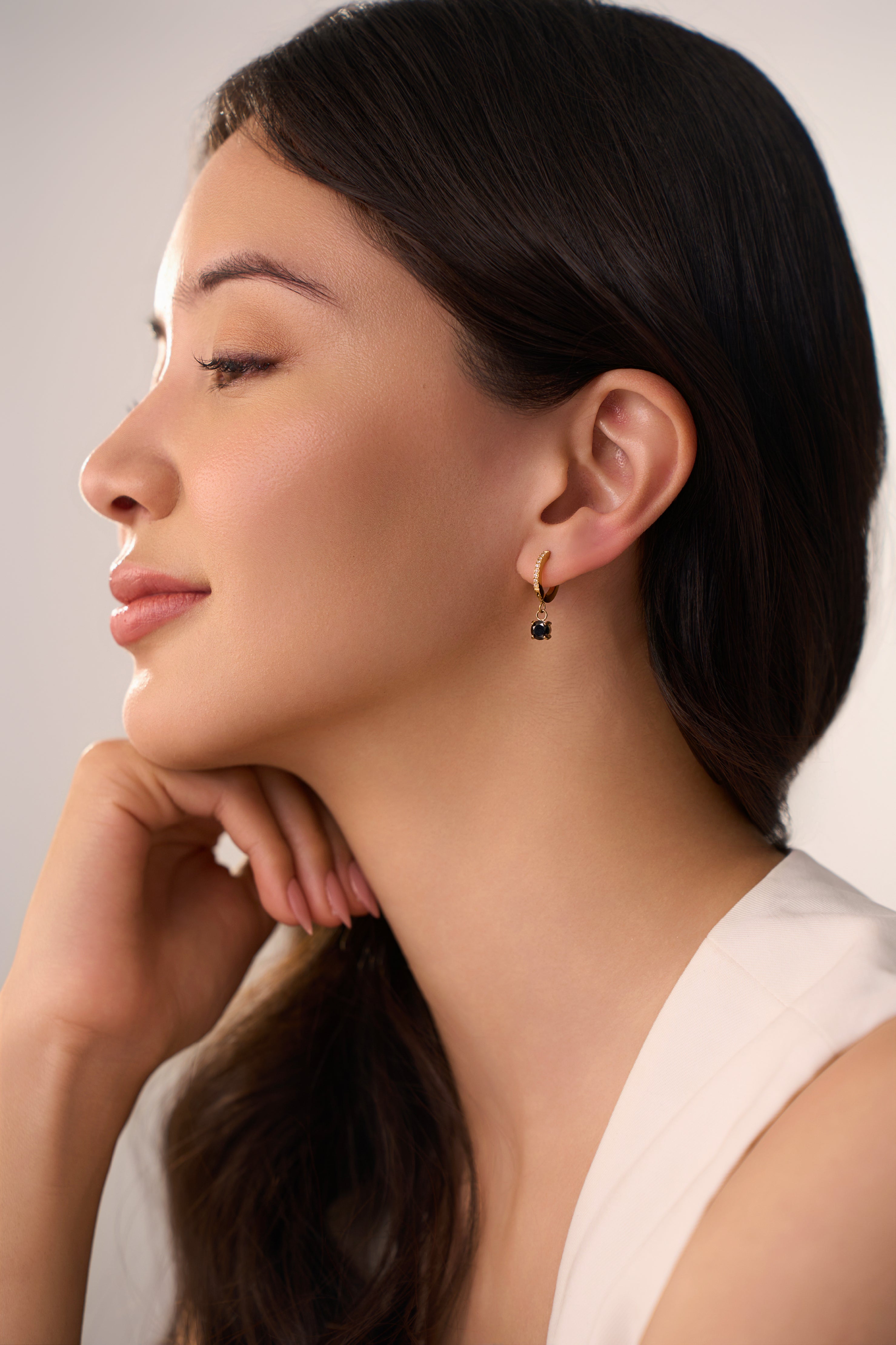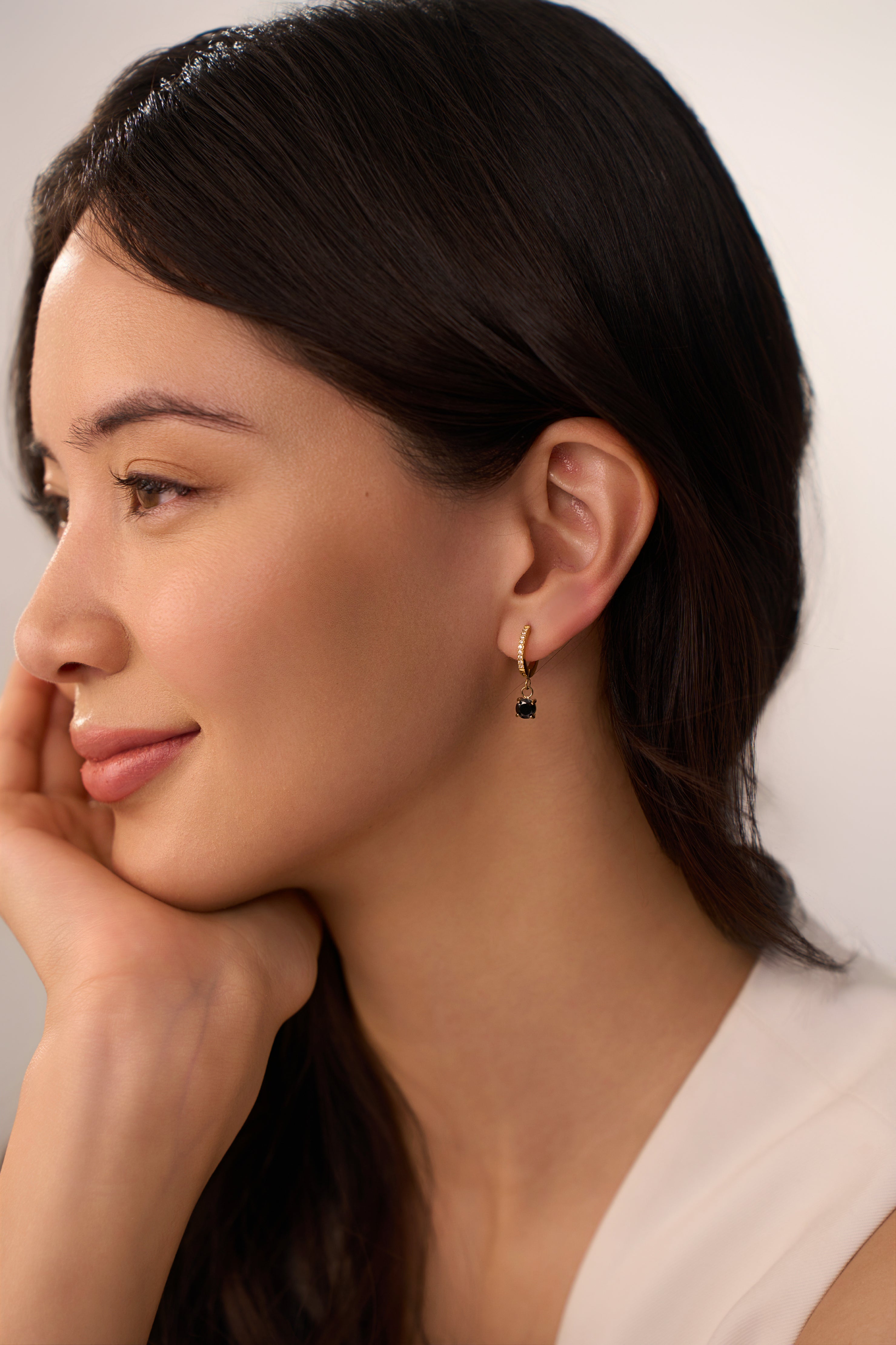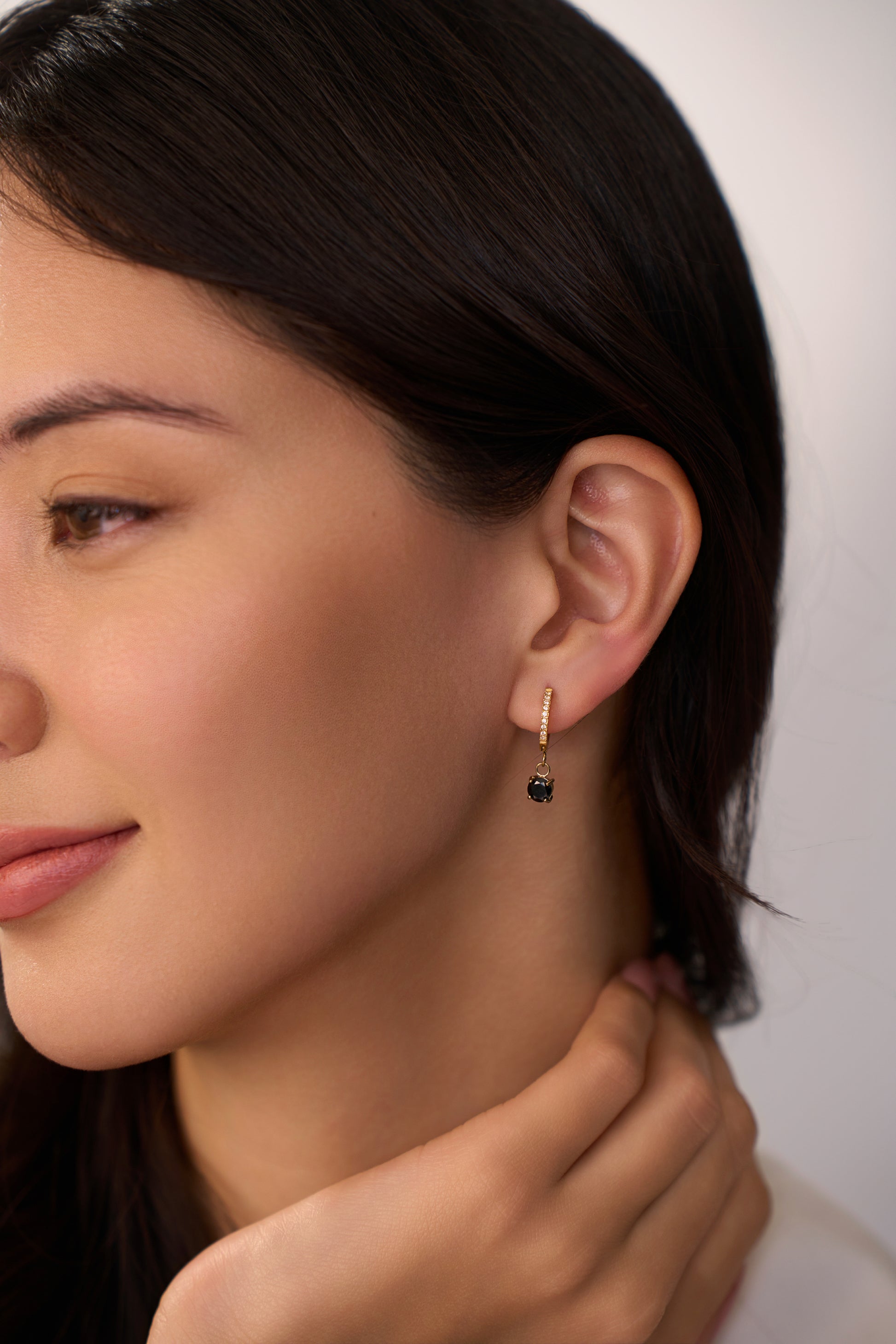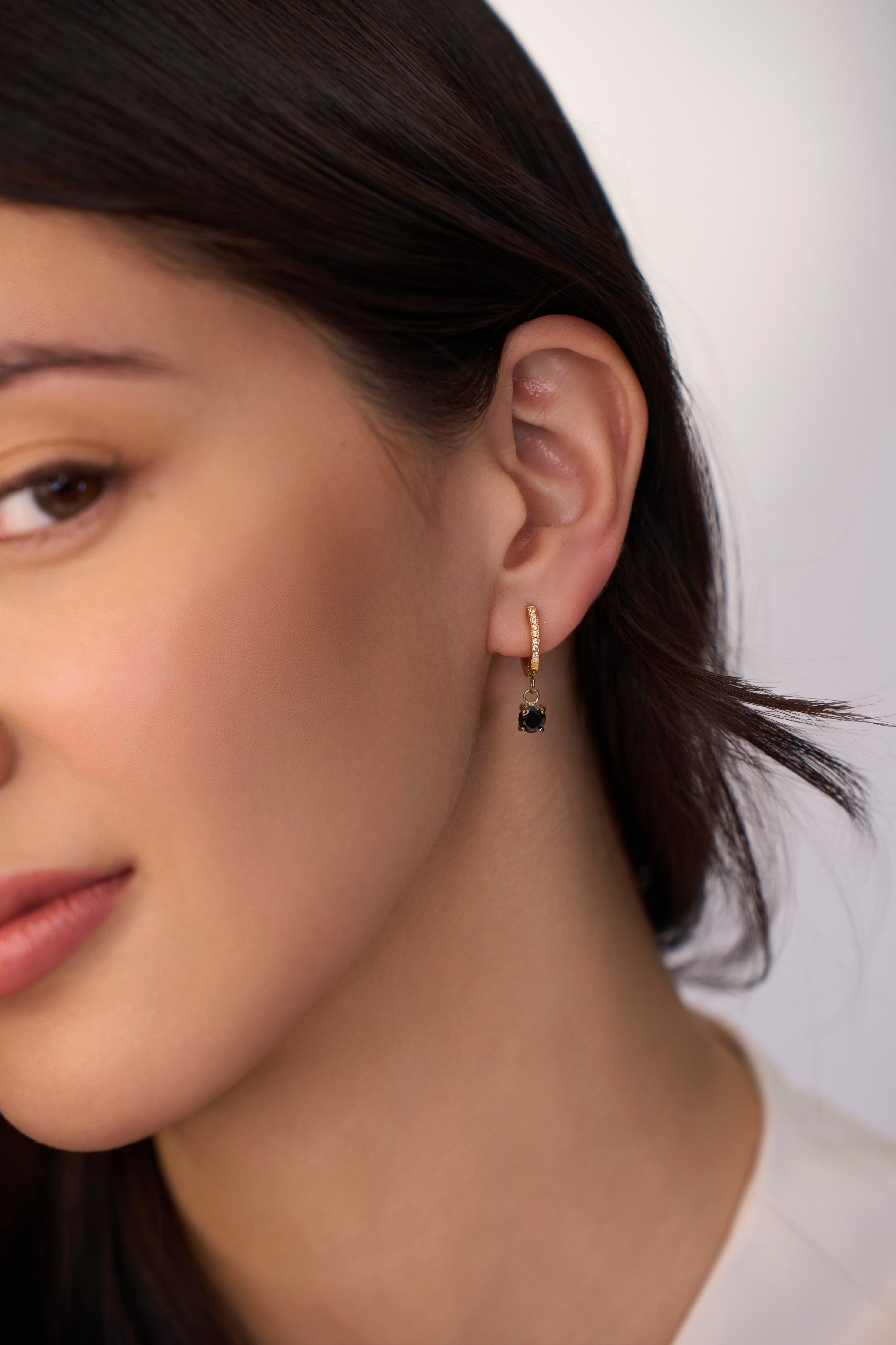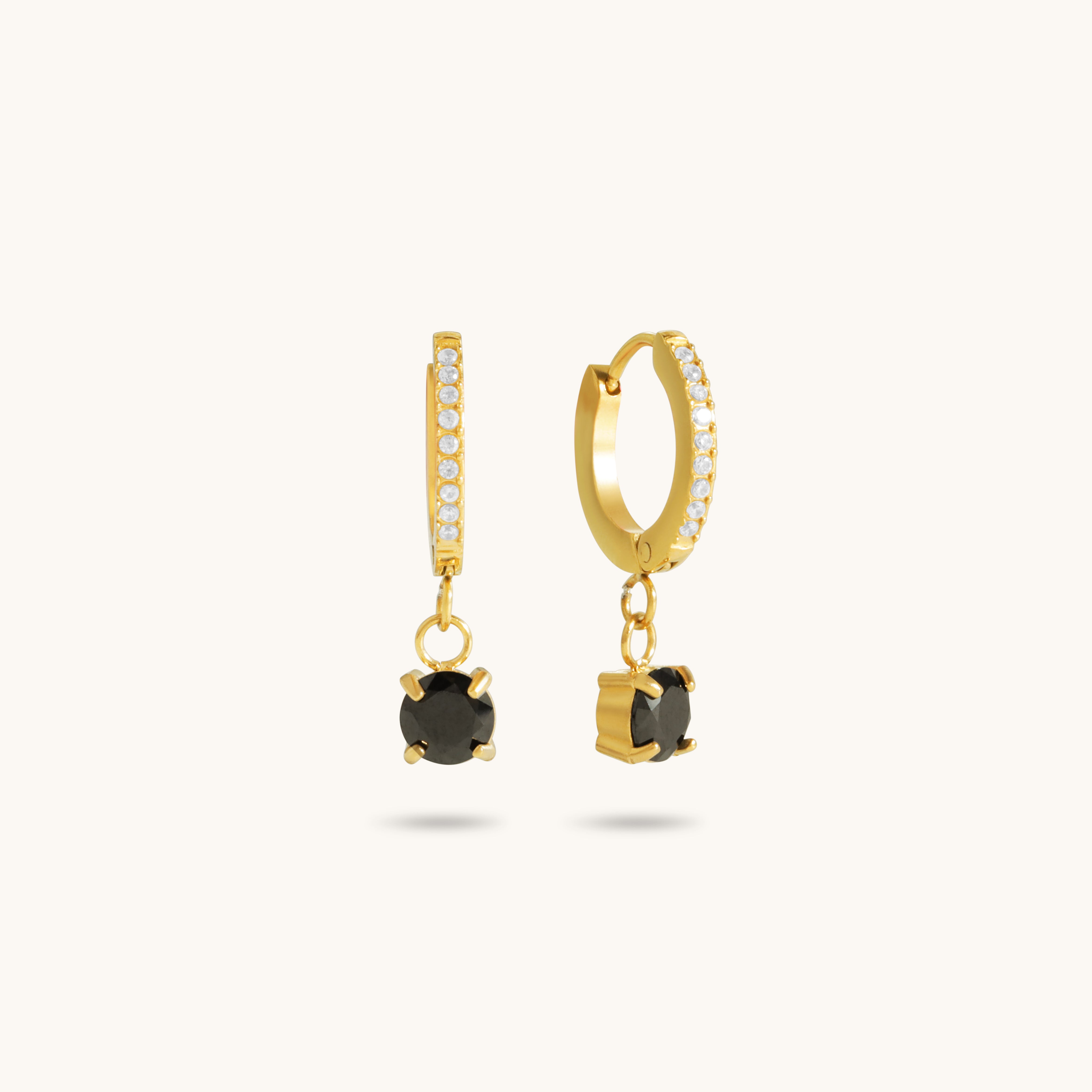 Make a statement with the Clara Black Huggies. These gold hoop earrings feature striking black gemstones that add a touch of edginess and elegance to any look. Whether you're dressing up for a night out or adding a bold accessory to your daily wear, the Clara Black Huggies are the perfect choice.