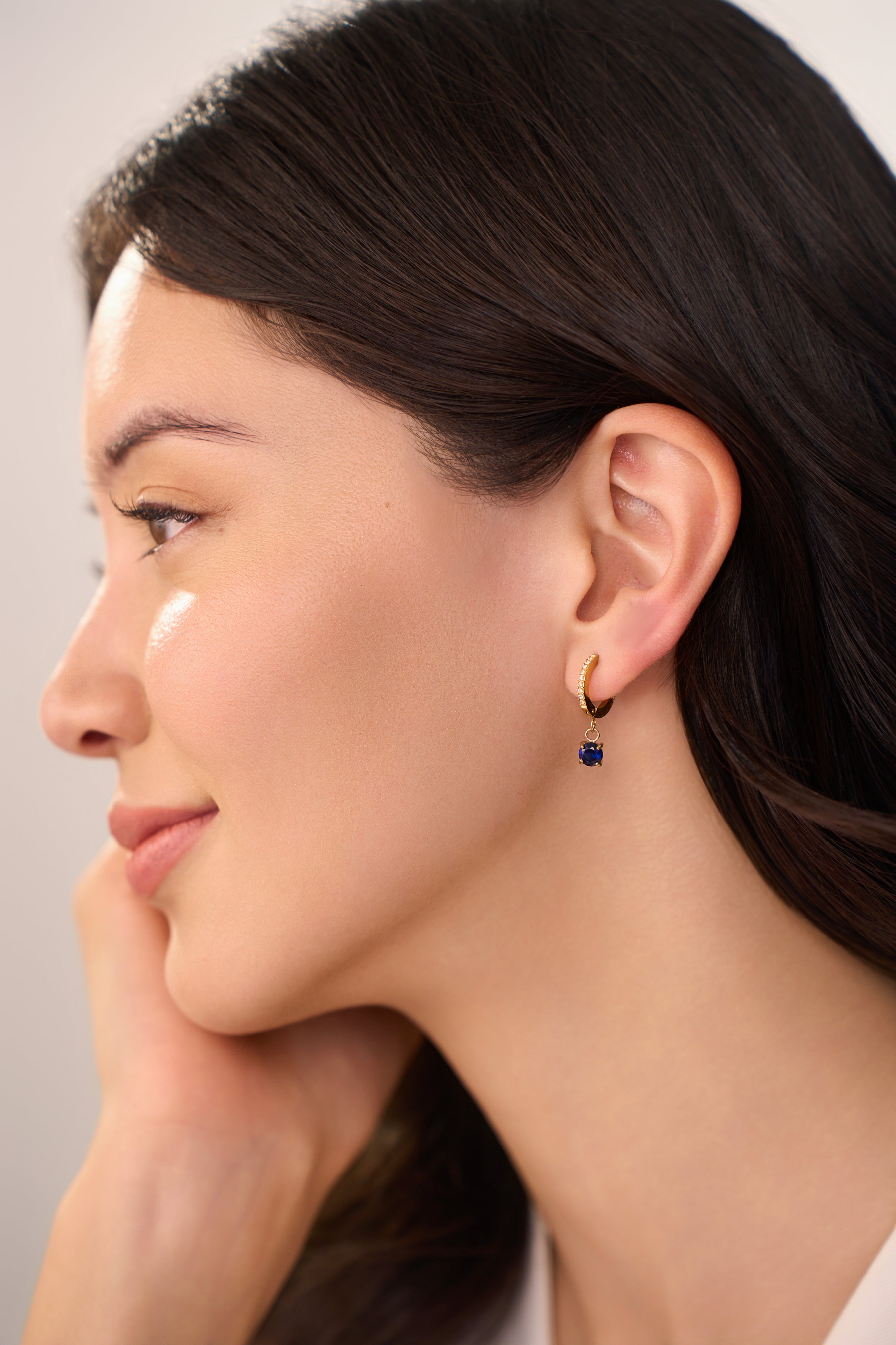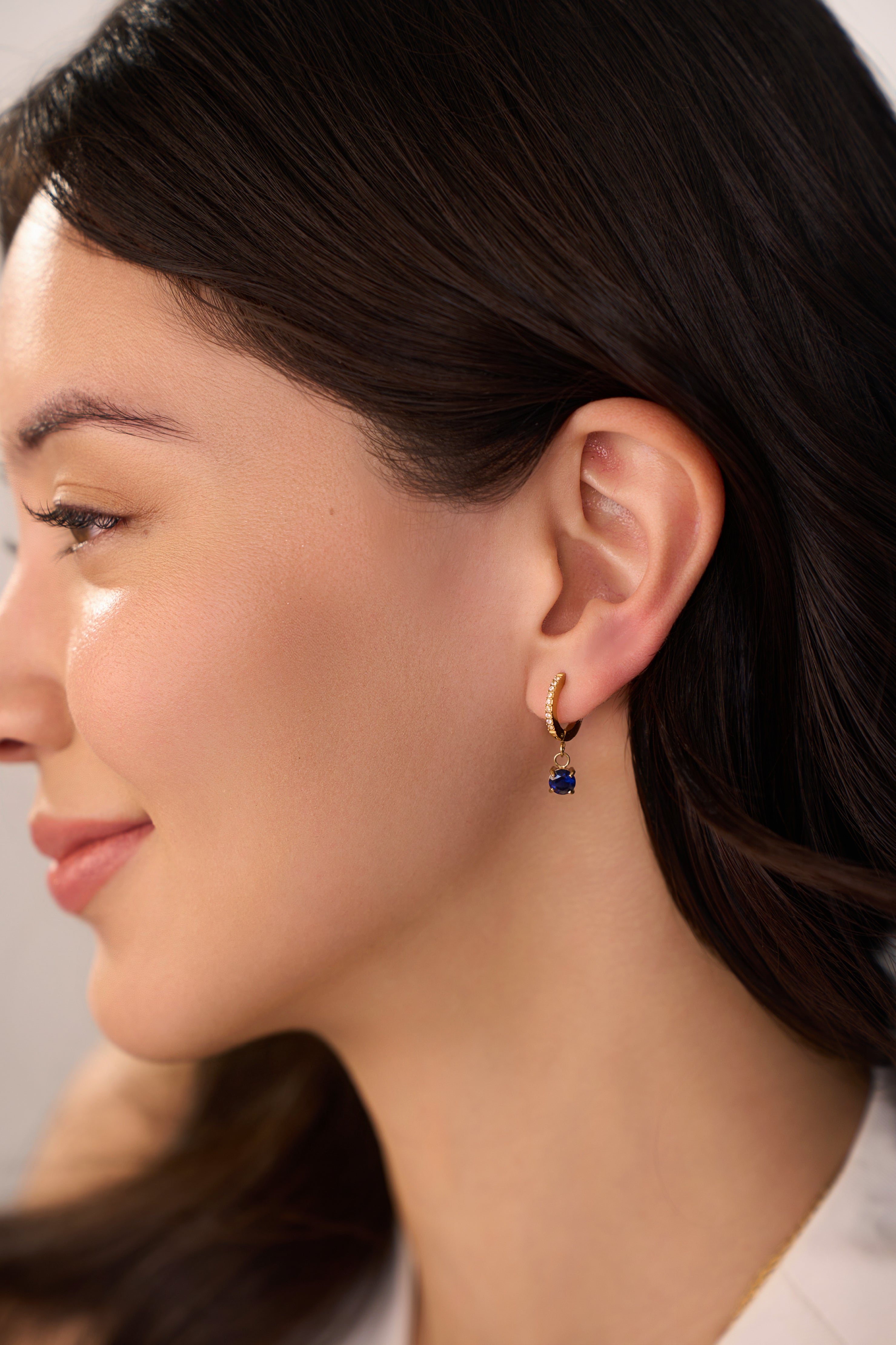Add a splash of color to your jewelry collection with the Clara Blue Huggies. These elegant earrings feature a stunning blue gemstone surrounded by clear stones, creating a dazzling effect. Ideal for special occasions or adding a pop of color to your everyday ensemble, the Clara Blue Huggies are a stylish choice.