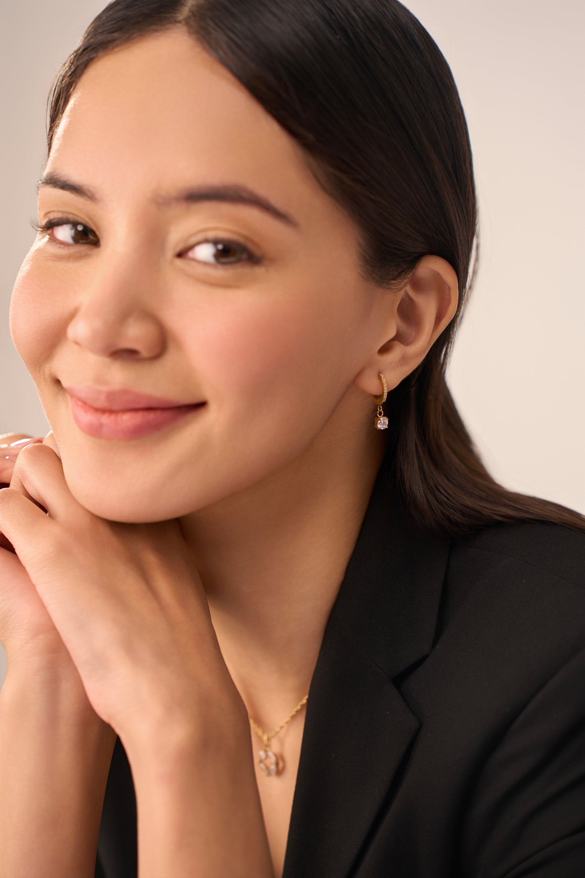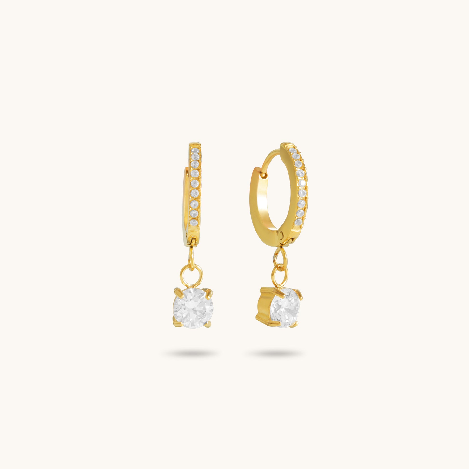 Discover the timeless beauty of the Clara Huggies. These gold hoop earrings, adorned with clear gemstones, offer a classic and sophisticated look that complements any outfit. Perfect for everyday wear or special occasions, the Clara Huggies are a versatile and stylish addition to your jewelry box.