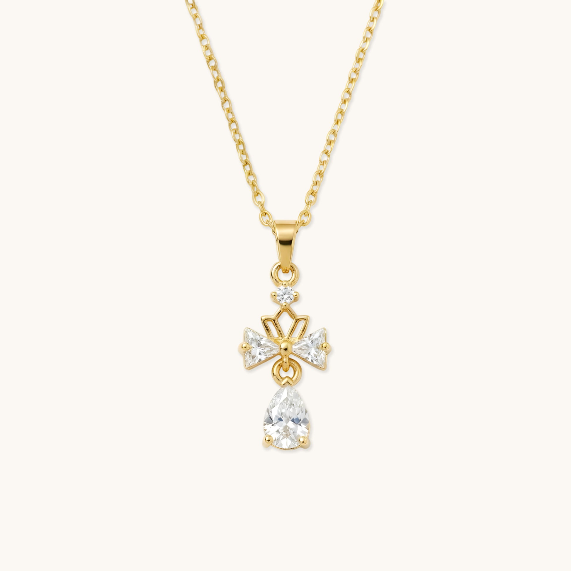 Crystal Bow Drop Necklace - 18k Gold Plated