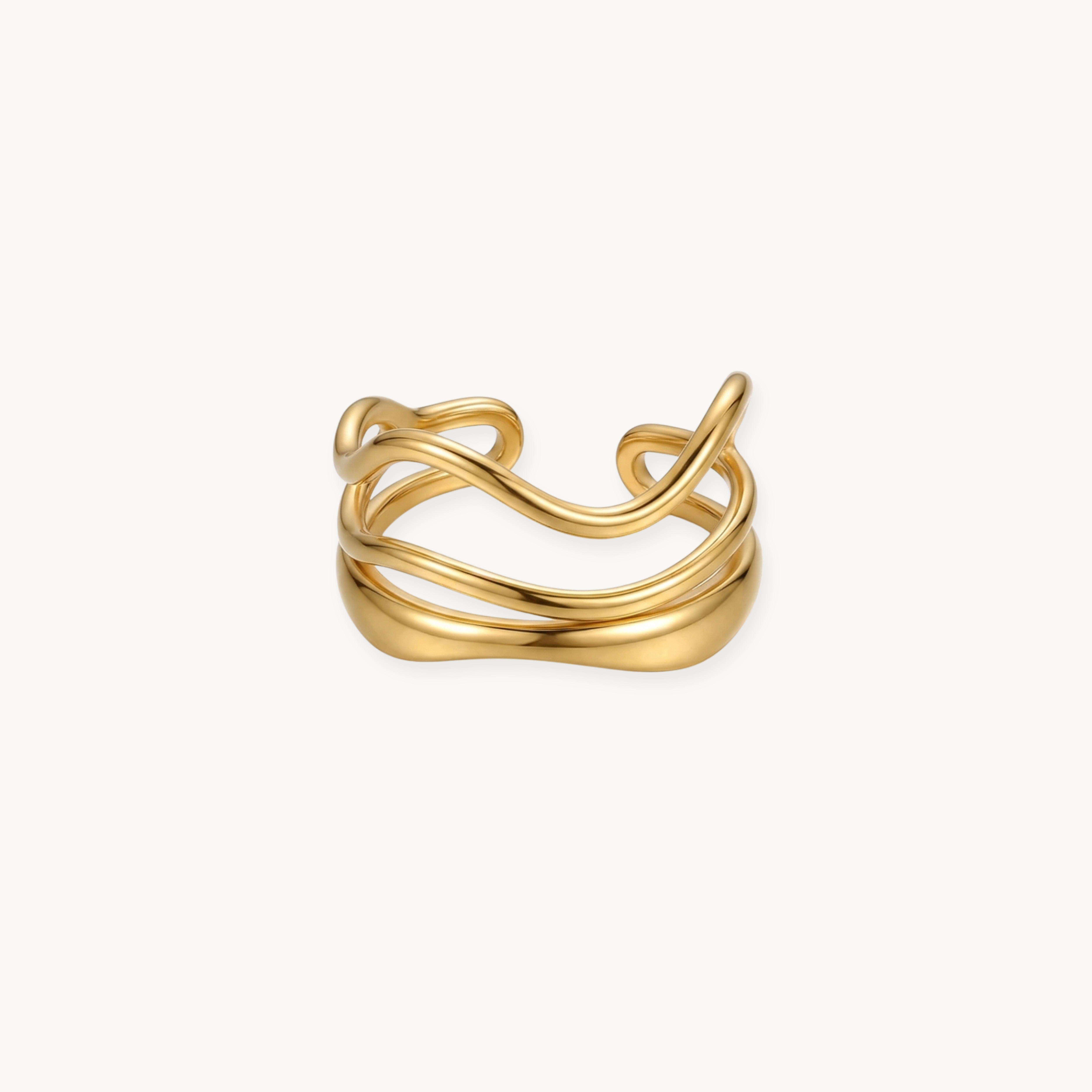 The metal is stainless steel with 18K gold plating. It has a warm gold tone—not too bright, not too dull. The plating lasts well if you take care of it. Keep it dry, avoid perfume sprays directly on it, and wipe it with a soft cloth after wearing.