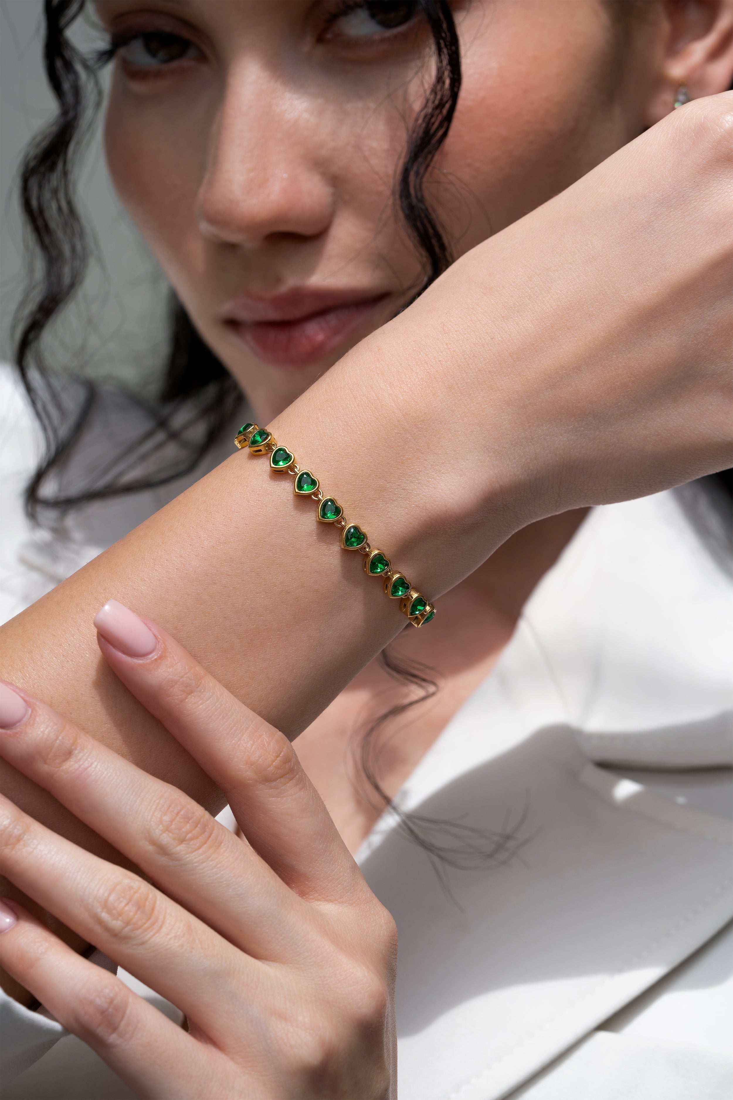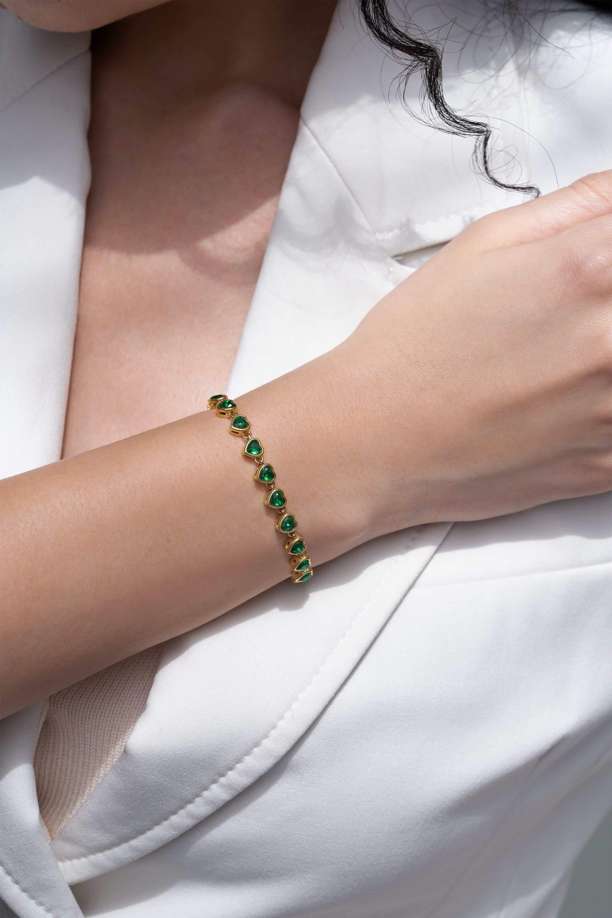 Emerald Heart Tennis Bracelet - 18K Gold Plated