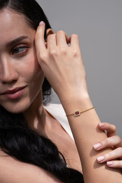 Ruby Rectangle Bracelet - 18K Gold Plated