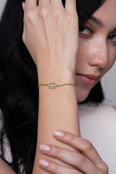 The Rectangle Halo Bracelet is a modern classic, designed in elegant hues to suit every style. Perfect for adding a refined touch to your everyday look.