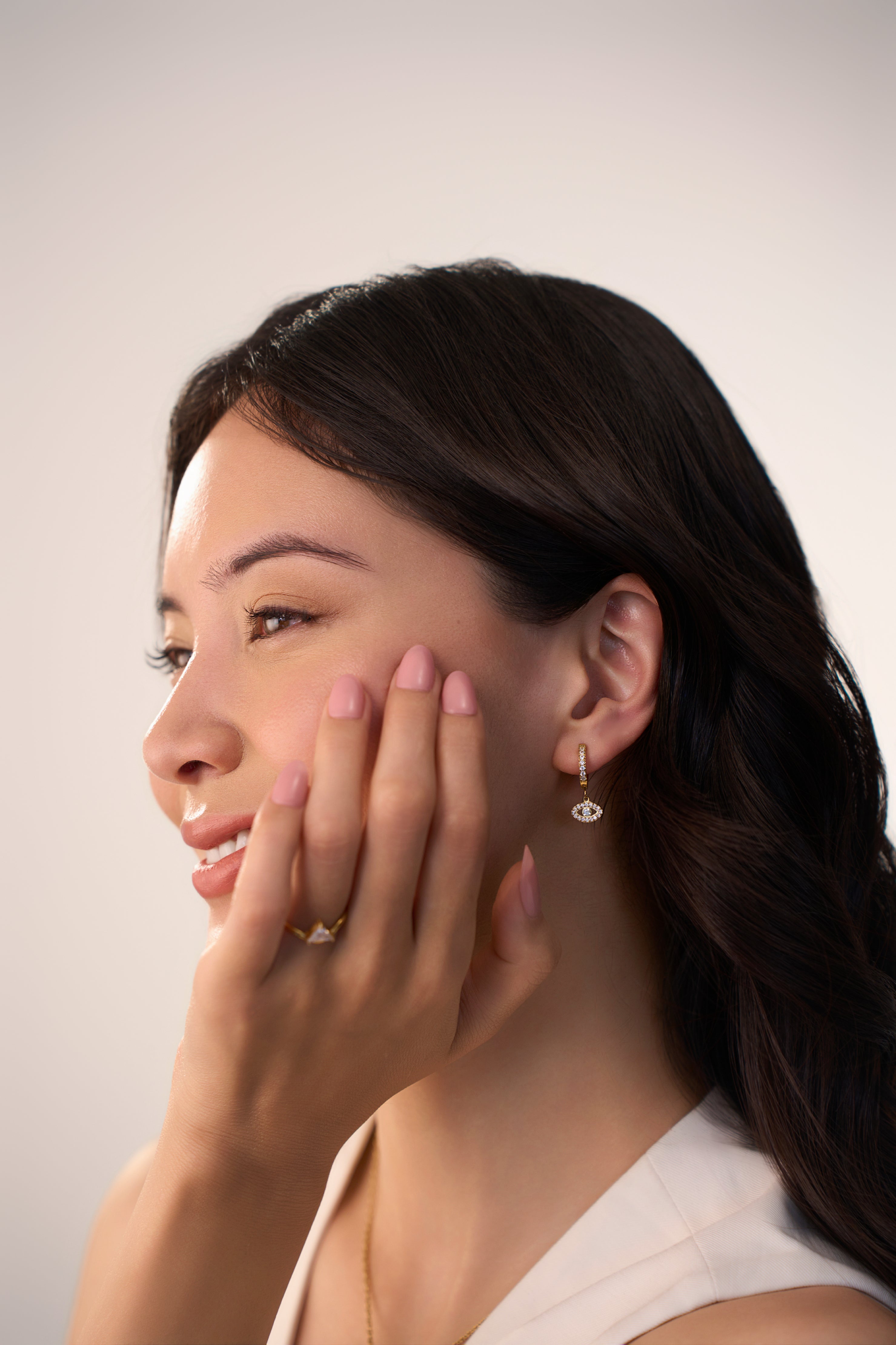 Add a touch of mystique to your jewelry collection with our Evil Eve Huggies. These earrings feature a delicate evil eye charm encrusted with sparkling stones, perfect for warding off negativity while adding a stylish flair to any outfit. Ideal for both casual and formal occasions, these huggies are a must-have accessory for the modern woman.