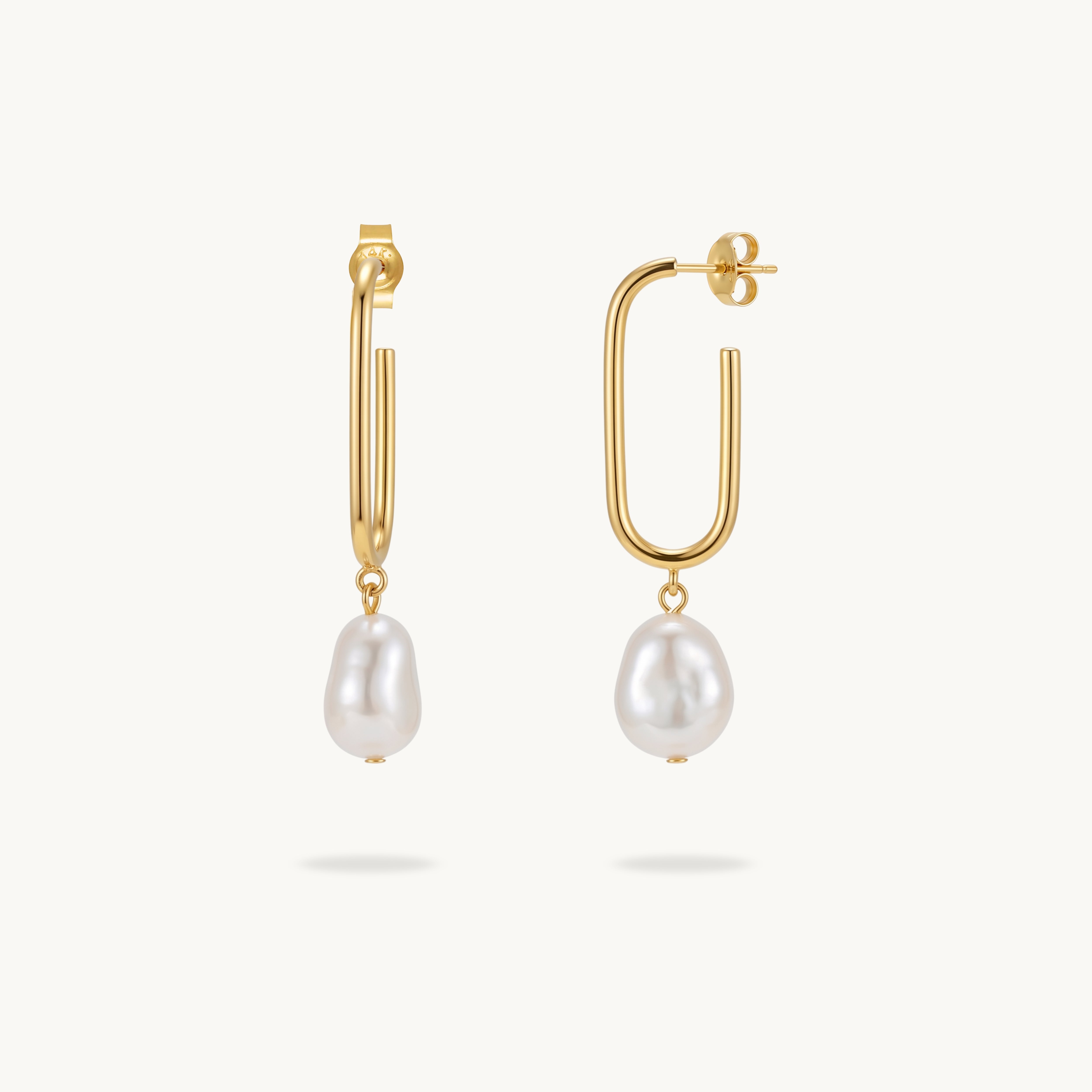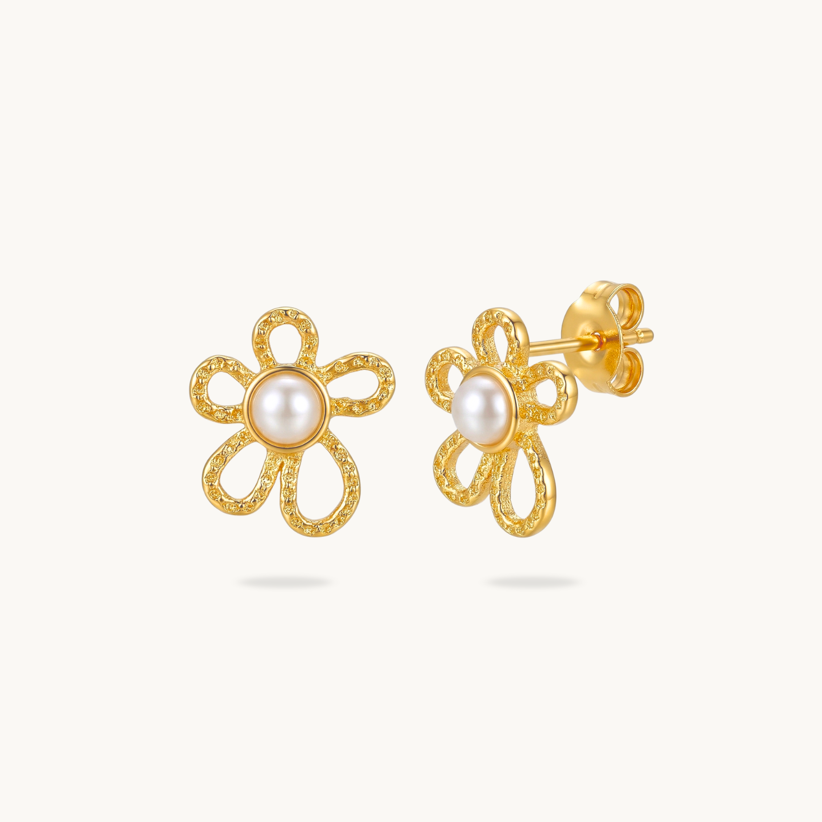Gold Petal Pearl Earrings - 18K Gold Plated