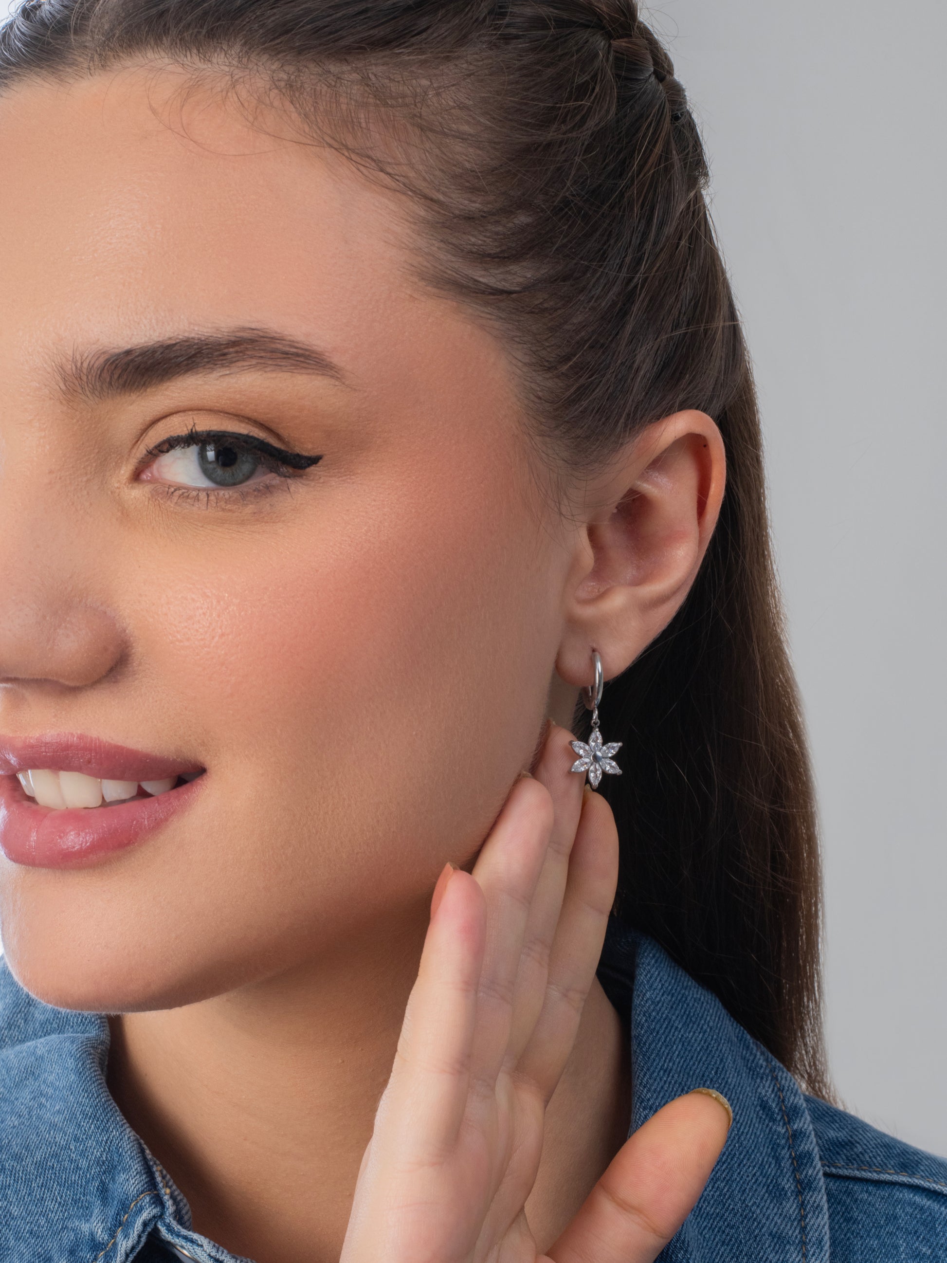 The Judith Huggies features shimmering diamonds set in a timeless design, adorned with delicate floral accents for a touch of feminine charm.