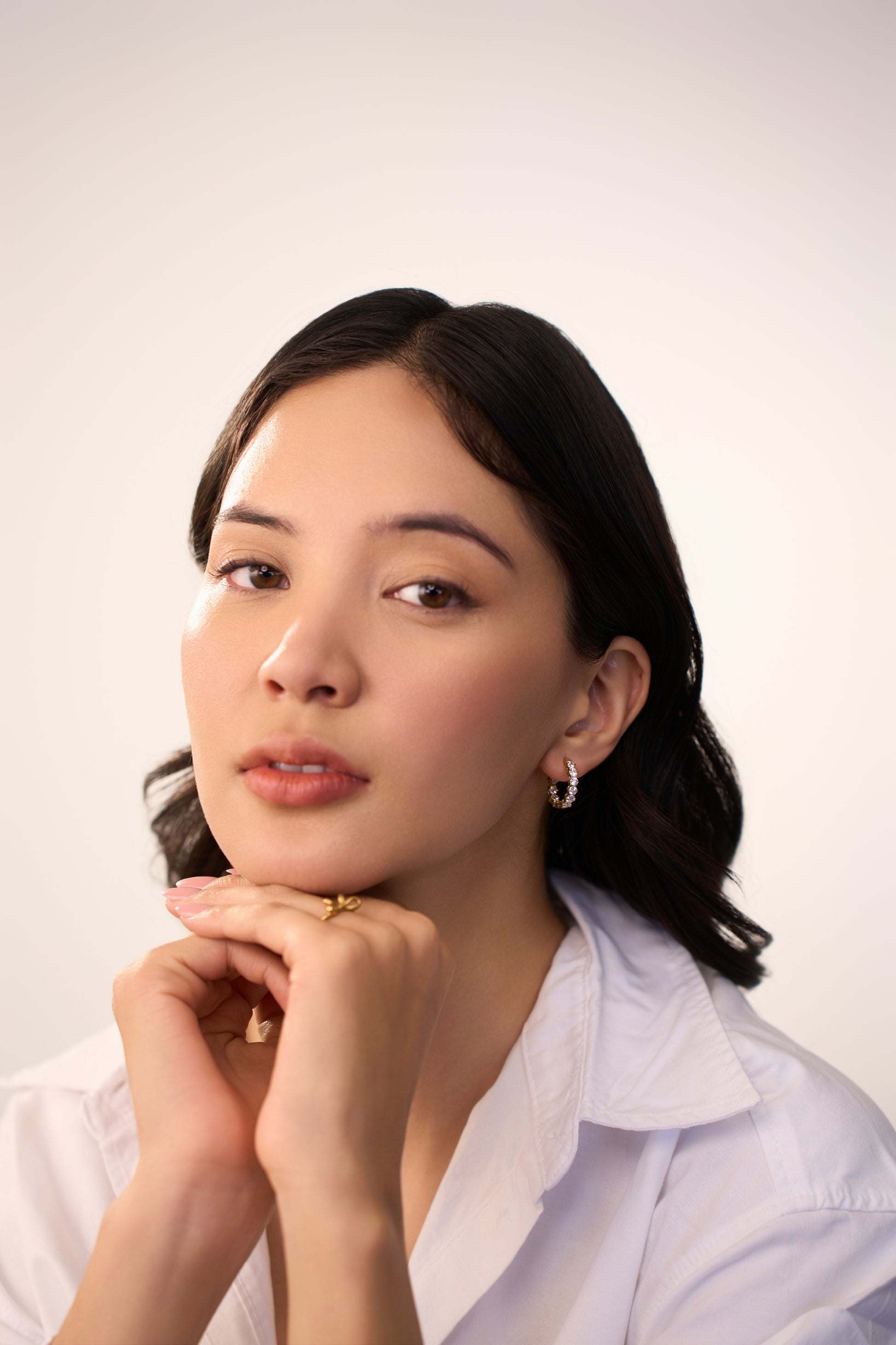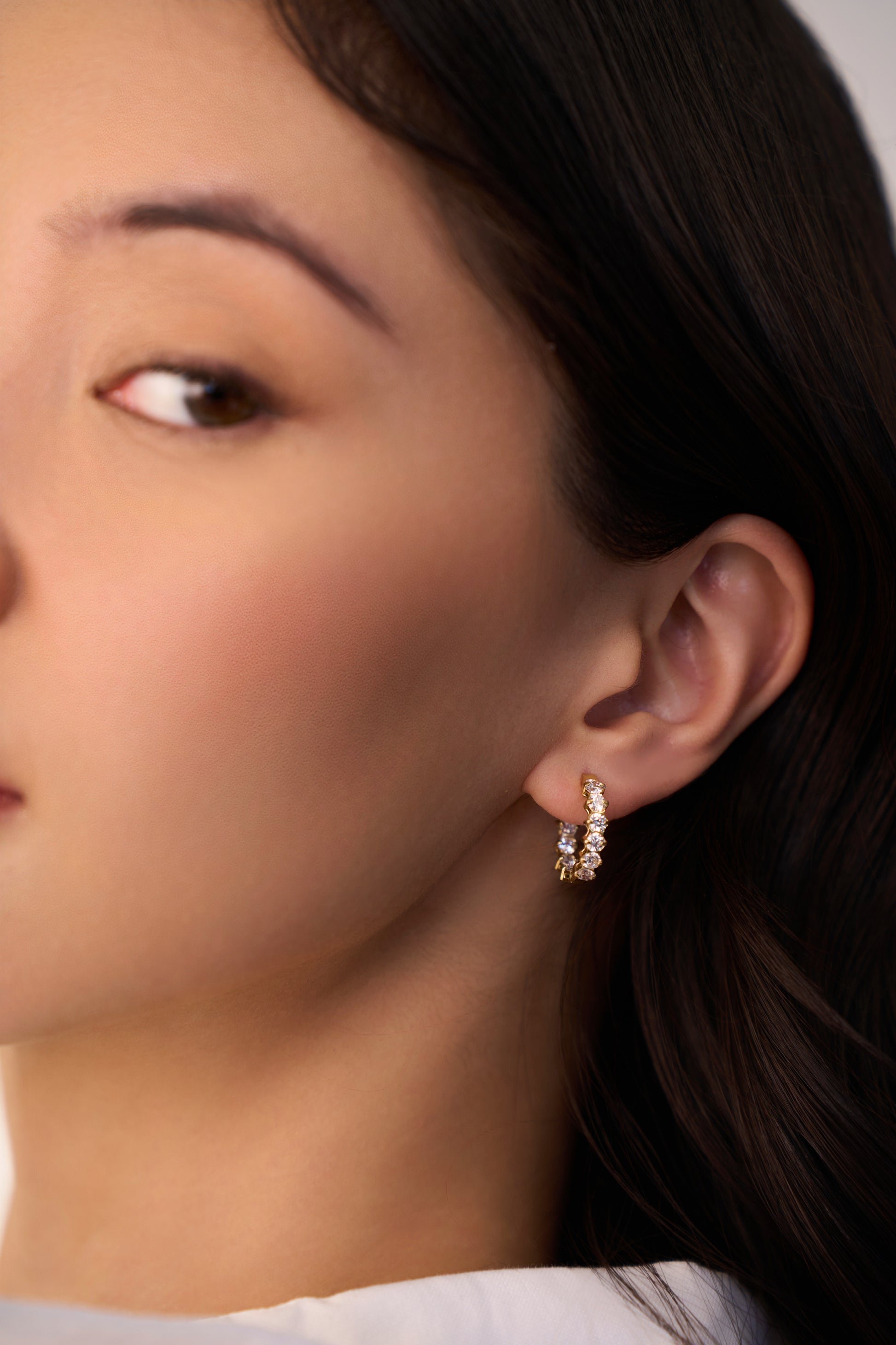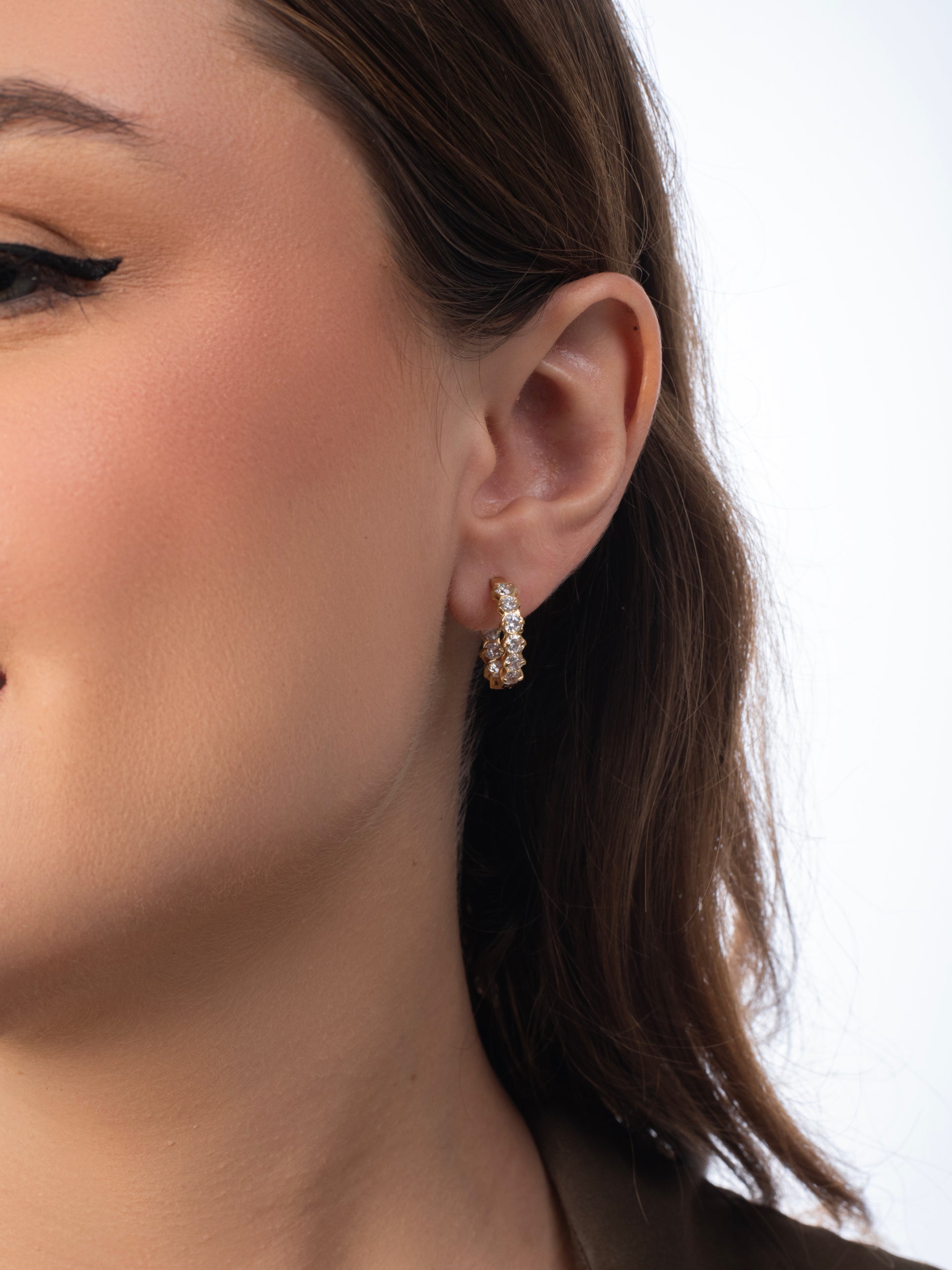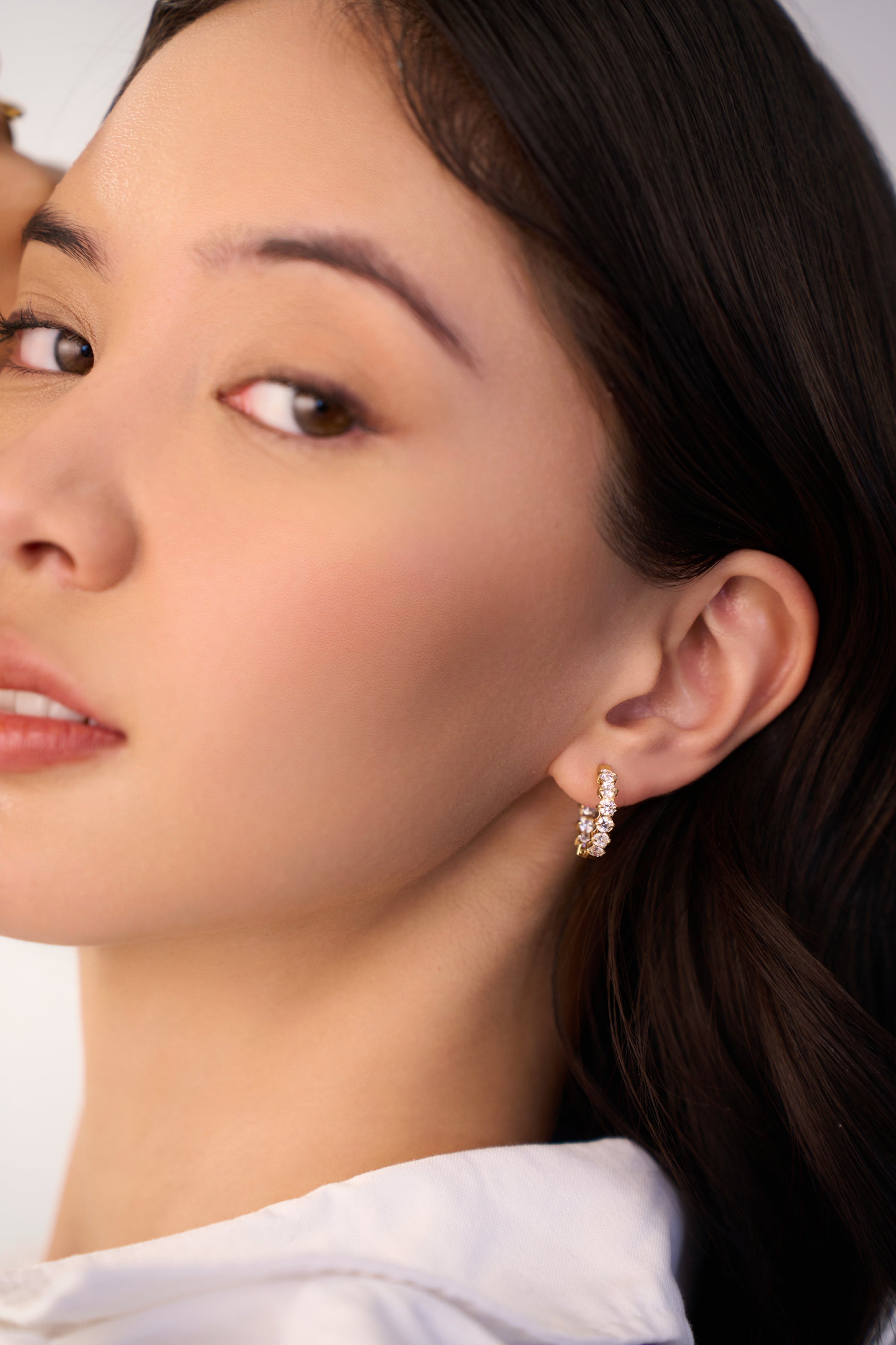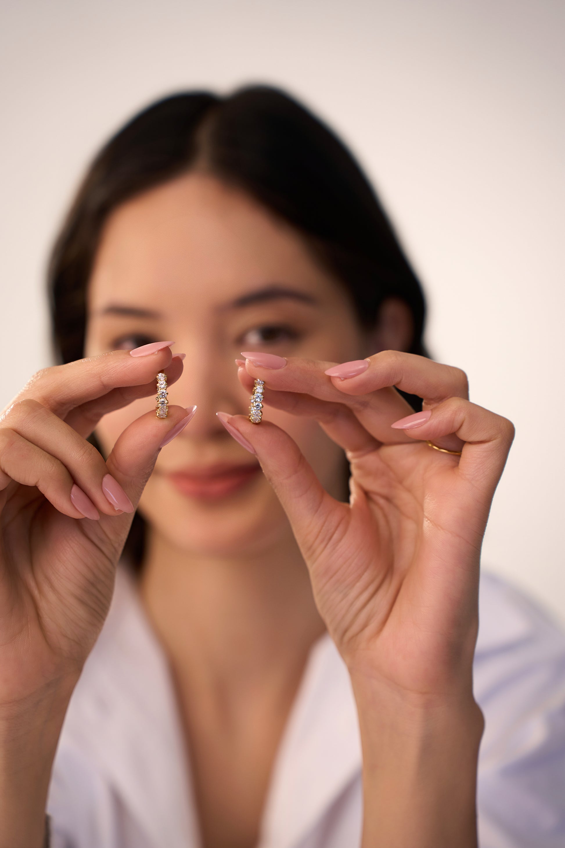The Juliana Diamond Hoops features shimmering diamonds which are perfect for any occasion, these earrings are sure to elevate your look with their classic design and sparkling brilliance.