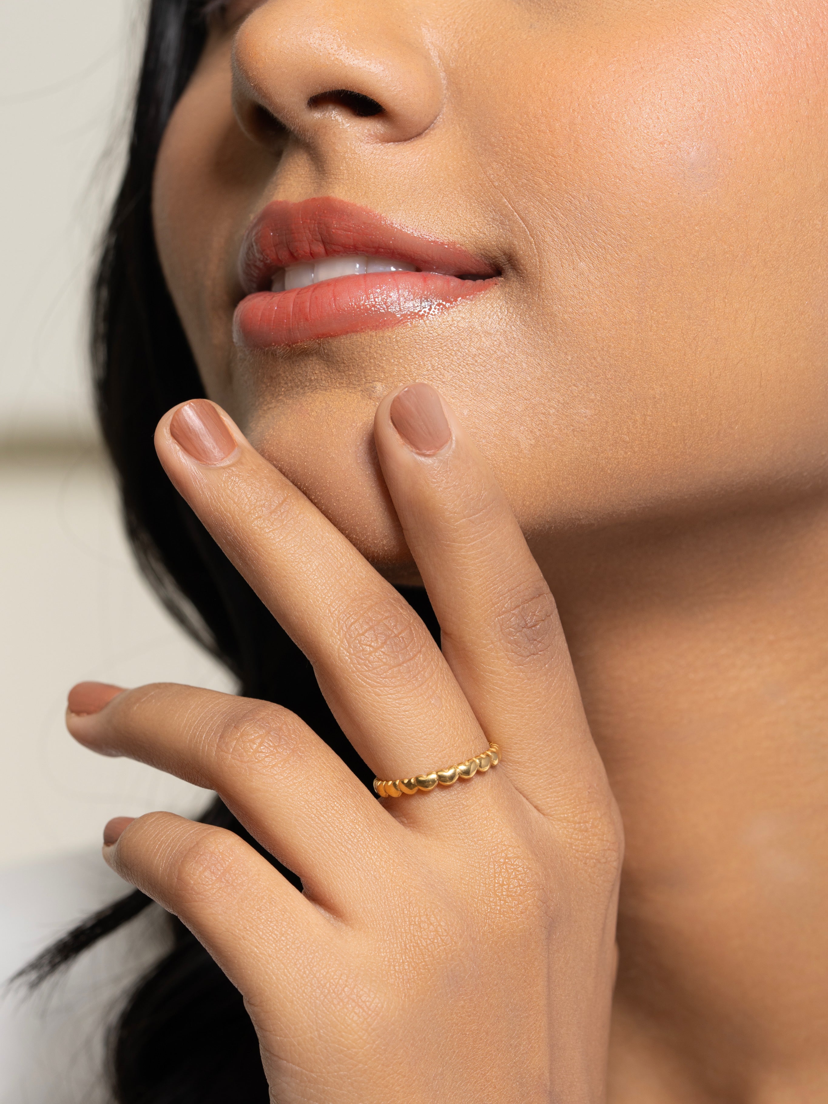 This is a gold plated love ring, made with stainless steel and finished in 18K gold. The colour is soft and warm. Not too bright. Not orange. Just a balanced gold tone that feels timeless.