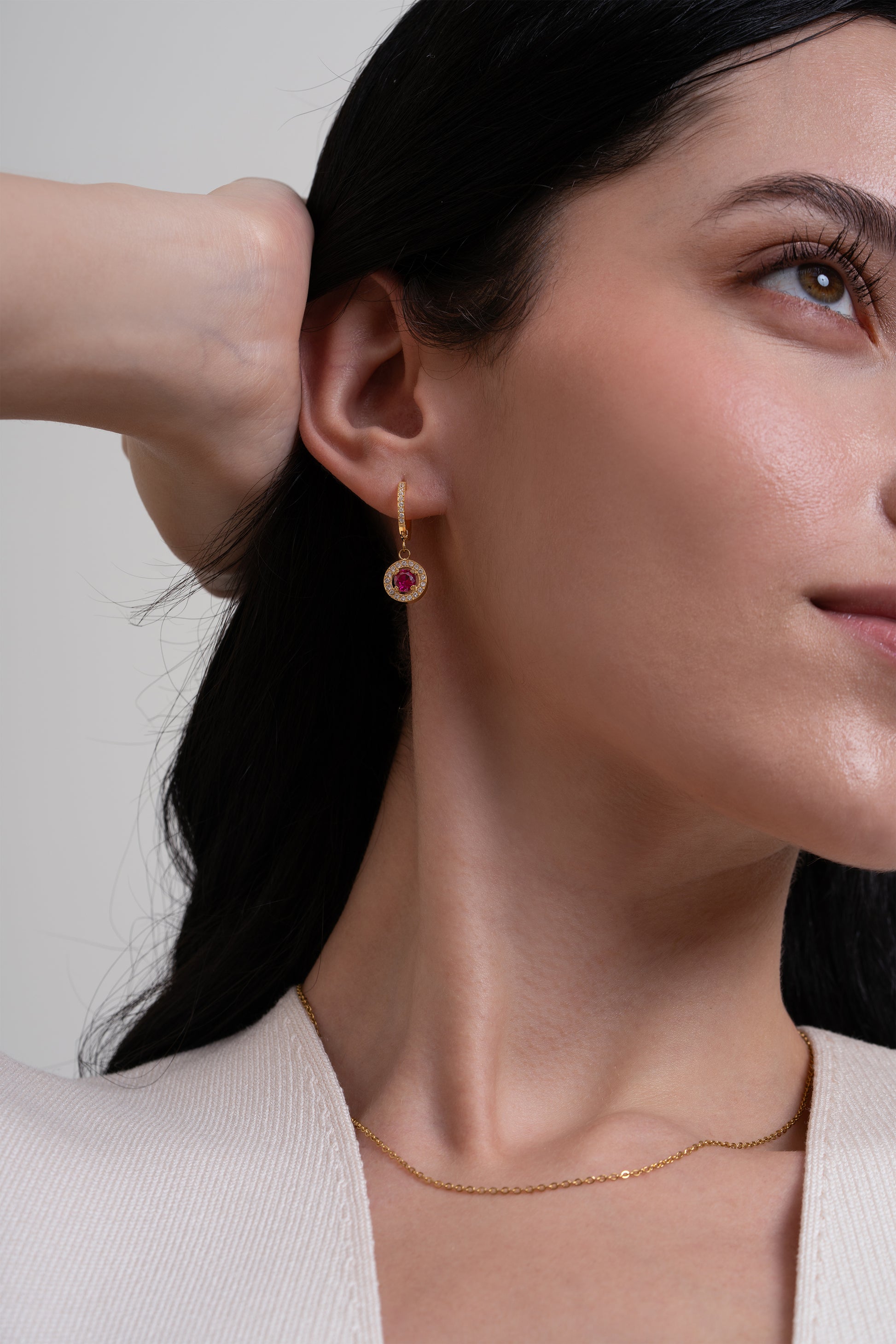 Ruby Circle Diamond Huggies - 18K Gold Plated