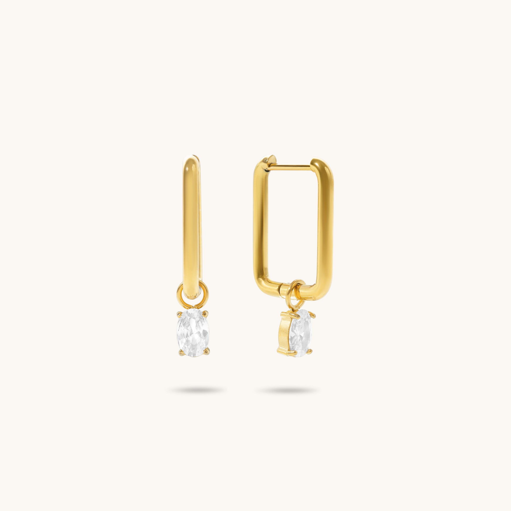 Chic and sophisticated, Sierra hoops features rectangular shape with a graceful diamond drop, blending classic glamour with modern charm.