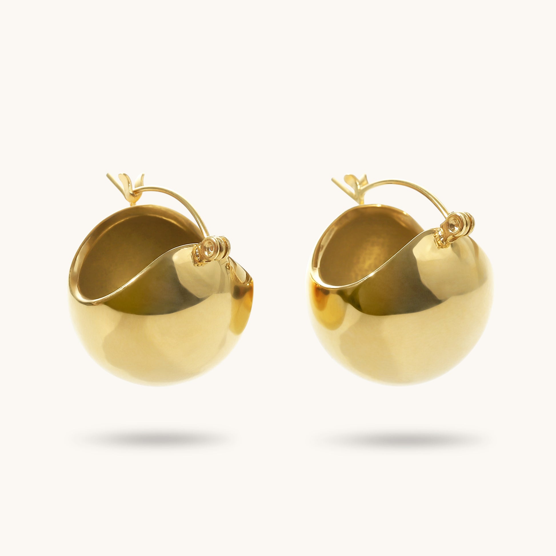 Silvia hoops are elegant, minimalist earrings featuring a solid circle design. Silvia hoops combine classic simplicity with modern flair, perfect for both casual and formal occasions. The solid circle element adds a unique touch, making them a versatile accessory for any wardrobe.