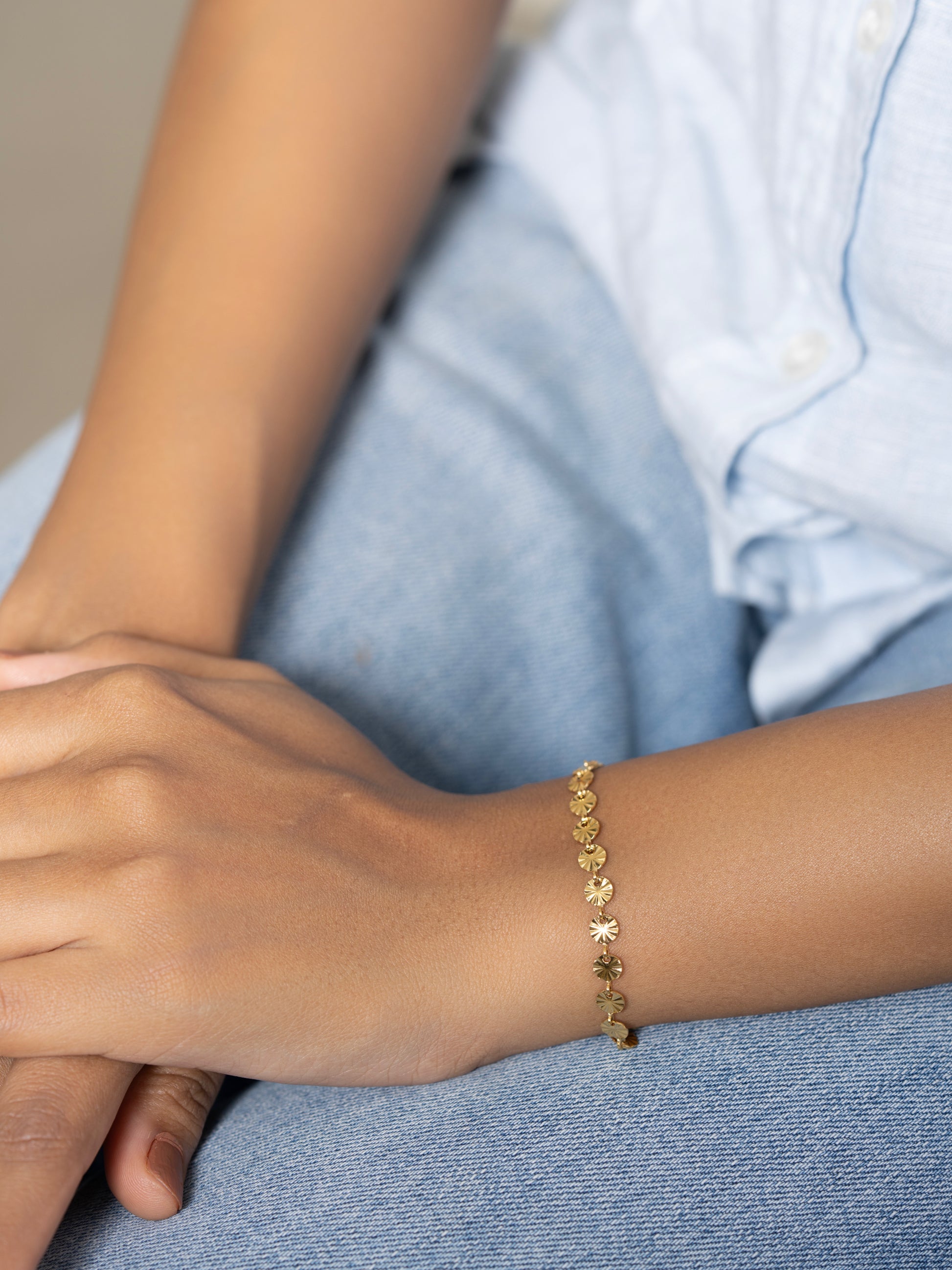 Radiating the spirit of summer, The Summer bracelet features a stunning solid flower-shaped design that captures the essence of blooming beauty and joyful warmth.