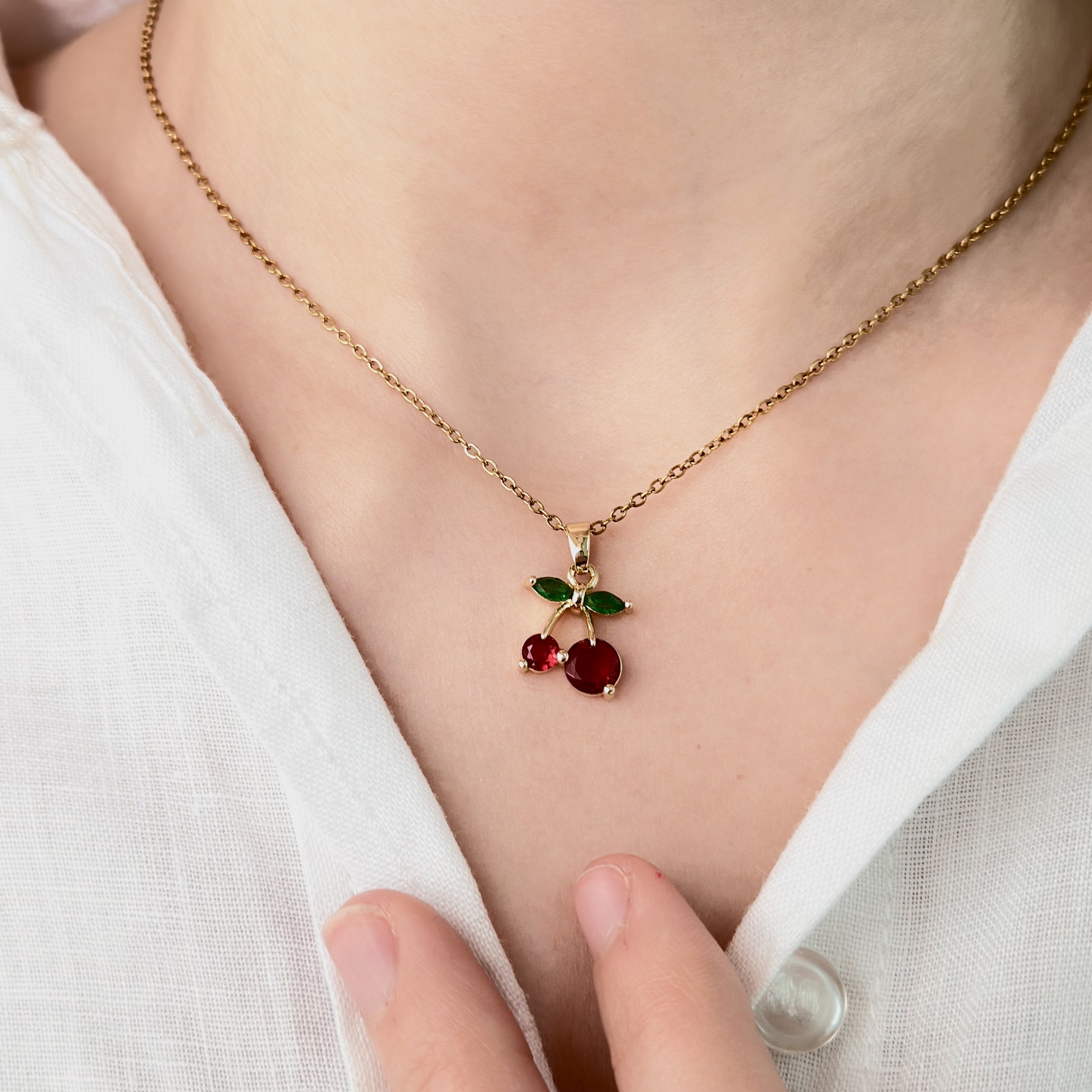 The Sweet Cherry Necklace is playful and delicate, crafted in demi-fine gold with vibrant cherry-inspired accents for a charming everyday touch.