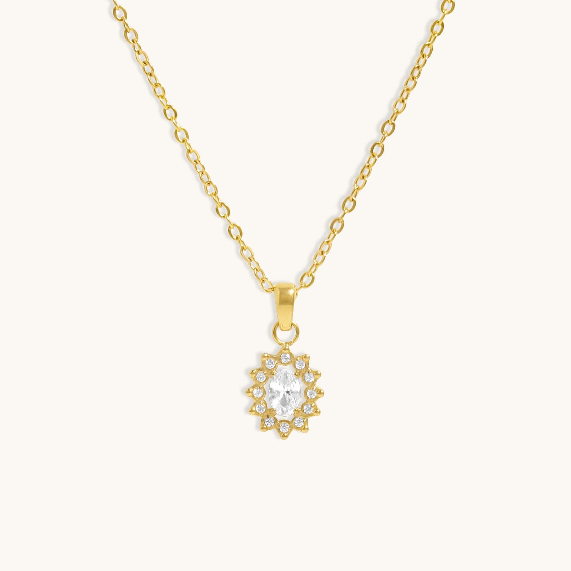 Oval Halo Diamond Necklace- 18K Gold Plated